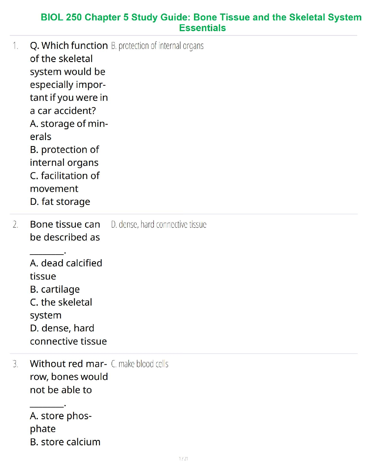 Human Anatomy and Physiology > STUDY GUIDE > BIOL 250 Chapter 5 Study Guide: Bone Tissue and the Skeletal System Essentials (All)