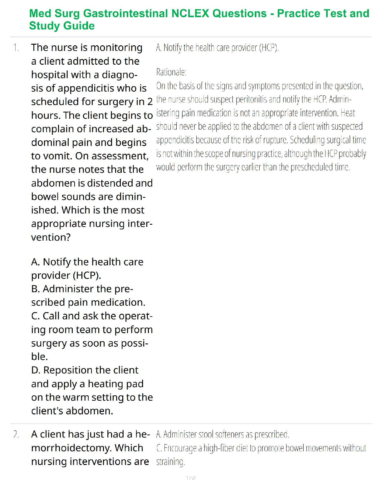 *NURSING > STUDY GUIDE > Med Surg Gastrointestinal NCLEX Questions - Practice Test and Study Guide (All)