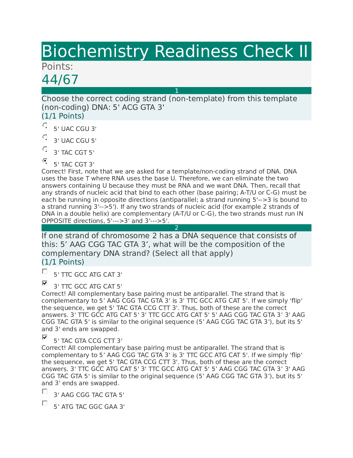 BioChemistry > STUDY GUIDE > BIOCHEM C785 Biochemistry Readiness Check II (All)