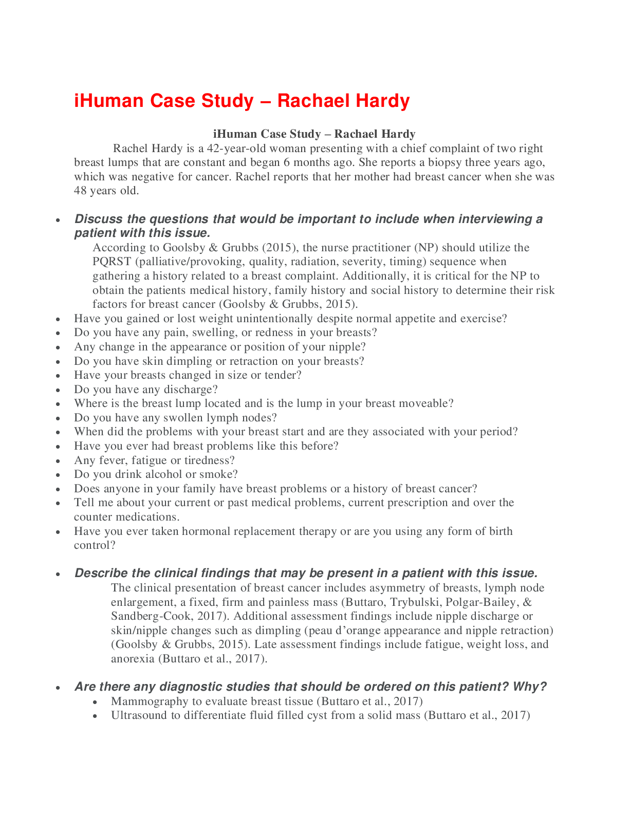 *NURSING > STUDY GUIDE > iHuman Case Study – Rachael Hardy (All)