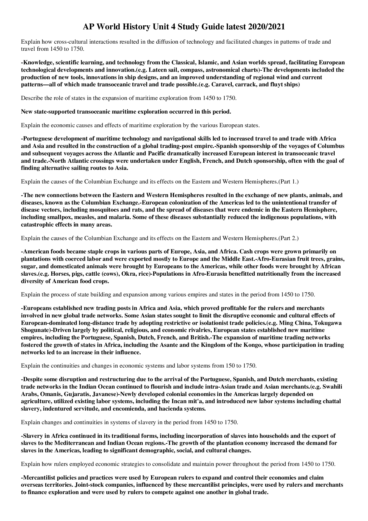 History > STUDY GUIDE > AP World History Unit 4 Study Guide Latest 2020/2021 (All)