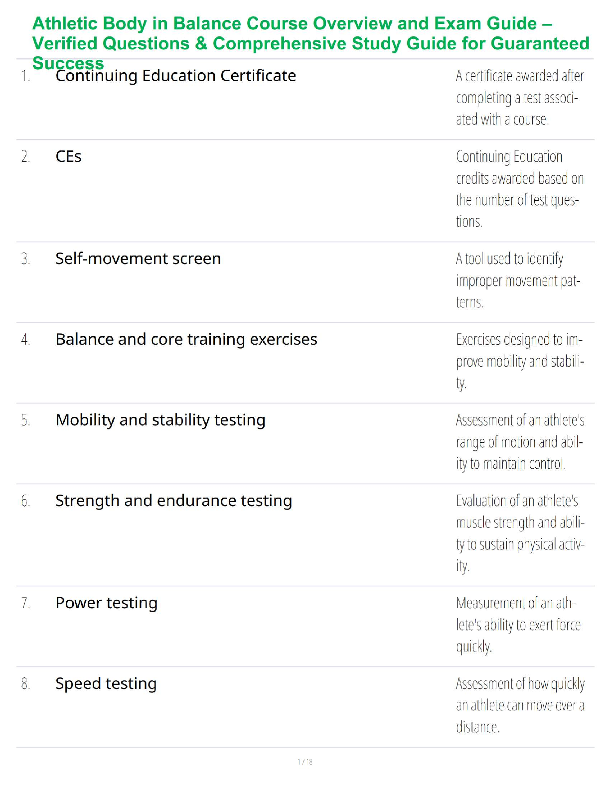 CERTIFIED FITNESS TRAINER > STUDY GUIDE > Athletic Body in Balance Course Overview and Exam Guide – Verified Questions & Comprehensive Study Guide for Guaranteed Success (All)