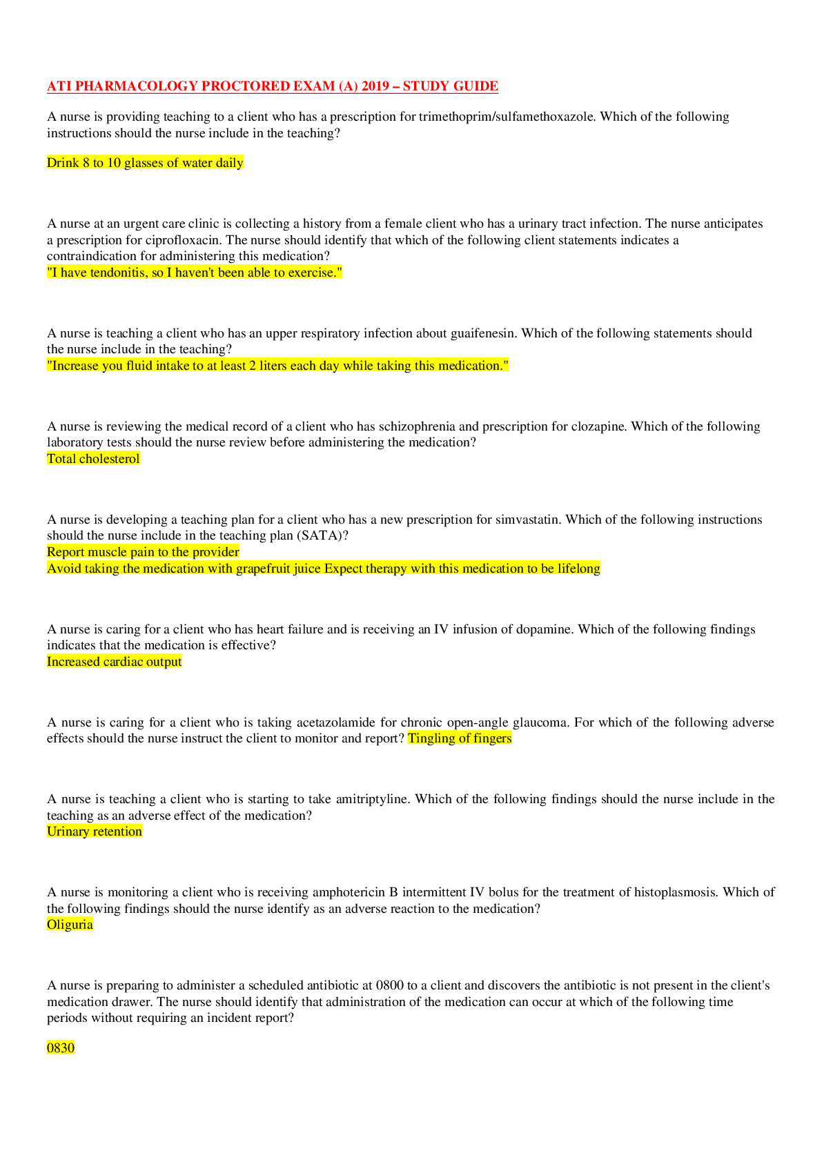Health Care > STUDY GUIDE > ATI PHARMACOLOGY PROCTORED EXAM (A) 2019 – STUDY GUIDE (All)