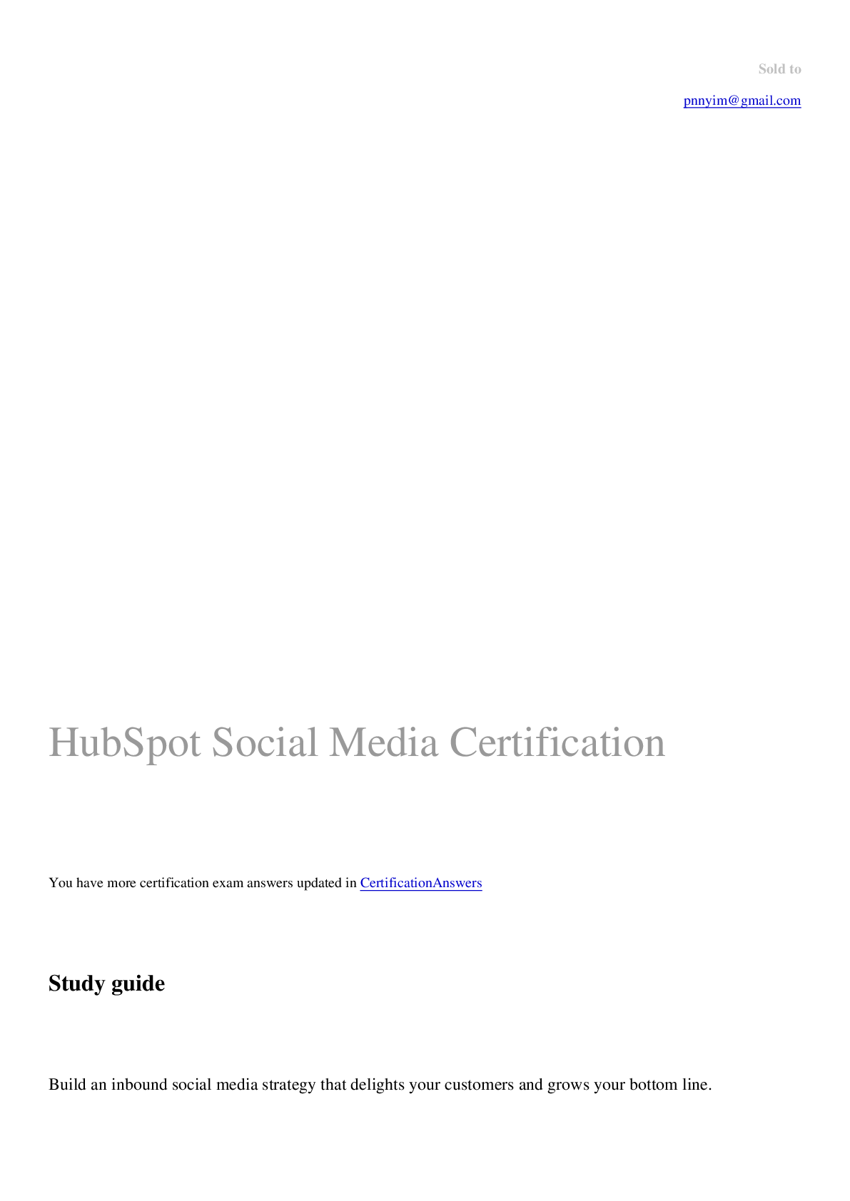 Business Research > Summary > Summary Hubspot Social Media Certification Exam Latest Questions/Answers. (All)