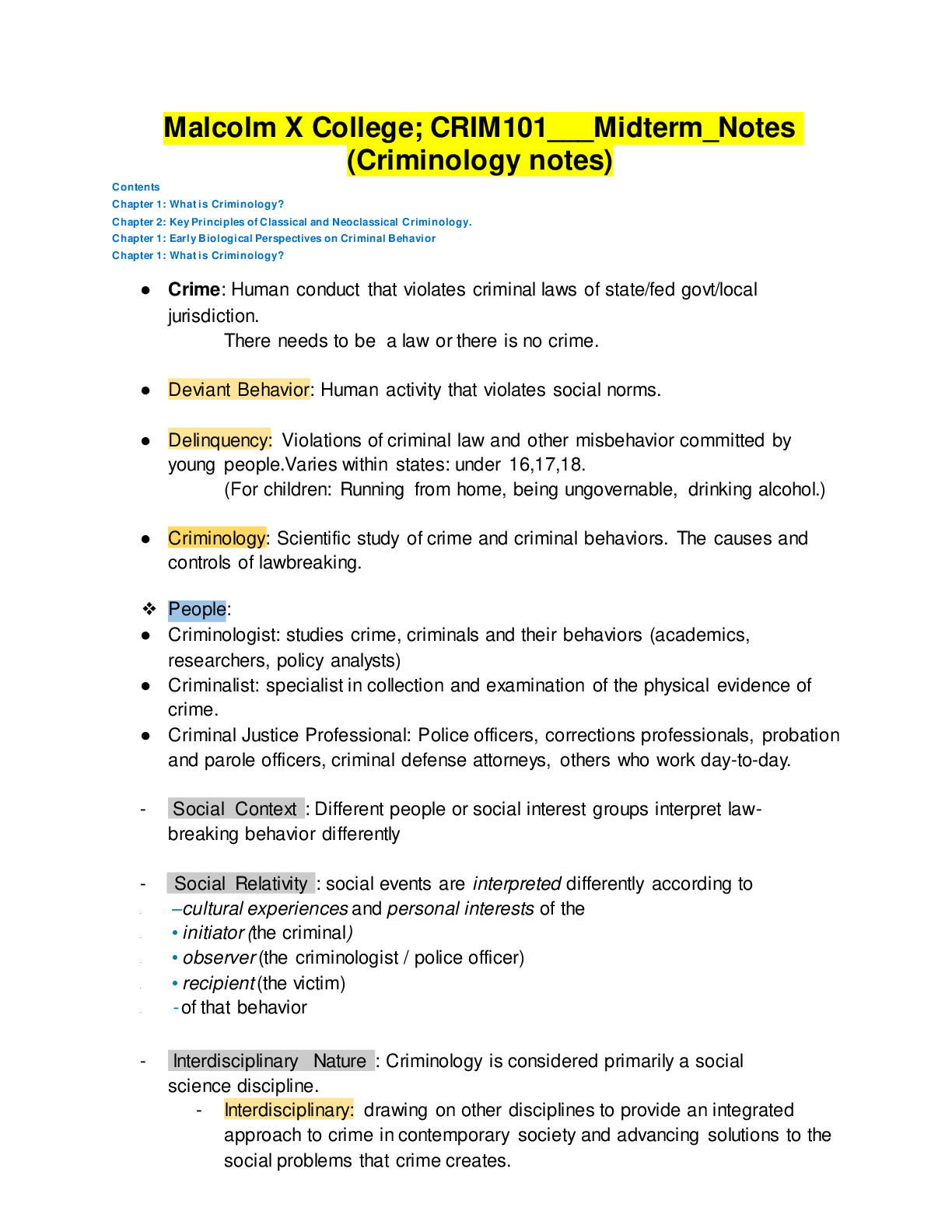 Criminology > Summary > Malcolm X College; CRIM101___Midterm_Notes (Criminology notes) (All)