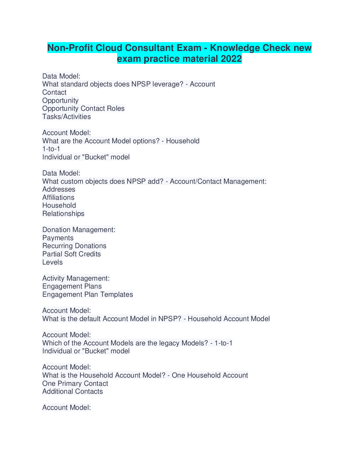 Education > Summary > Non-Profit Cloud Consultant Exam - Knowledge Check new exam practice material 2022 (All)