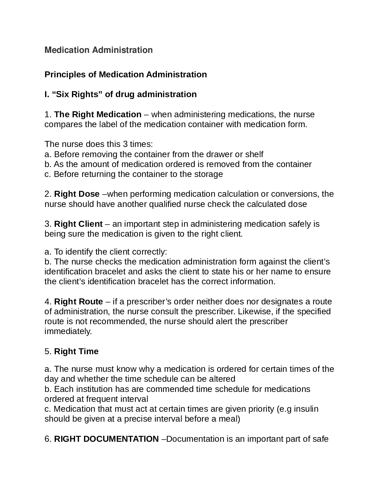 Health Care > Summary > PRINCIPALS OF MEDICATION ADMINISTRATION (All)