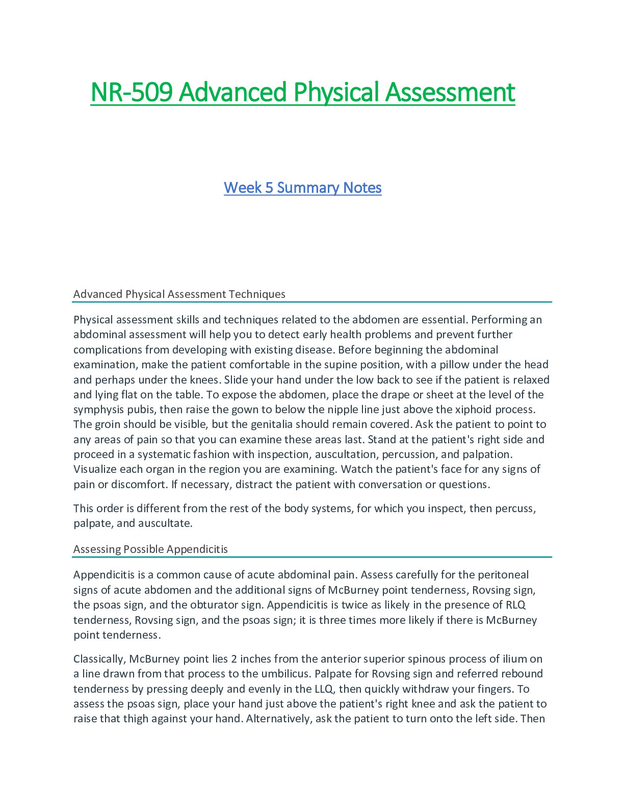 *NURSING > Summary > NR509 / NR 509 Week 5 Summary Notes (Latest): Advanced Physical Assessment - Chamberlain (All)