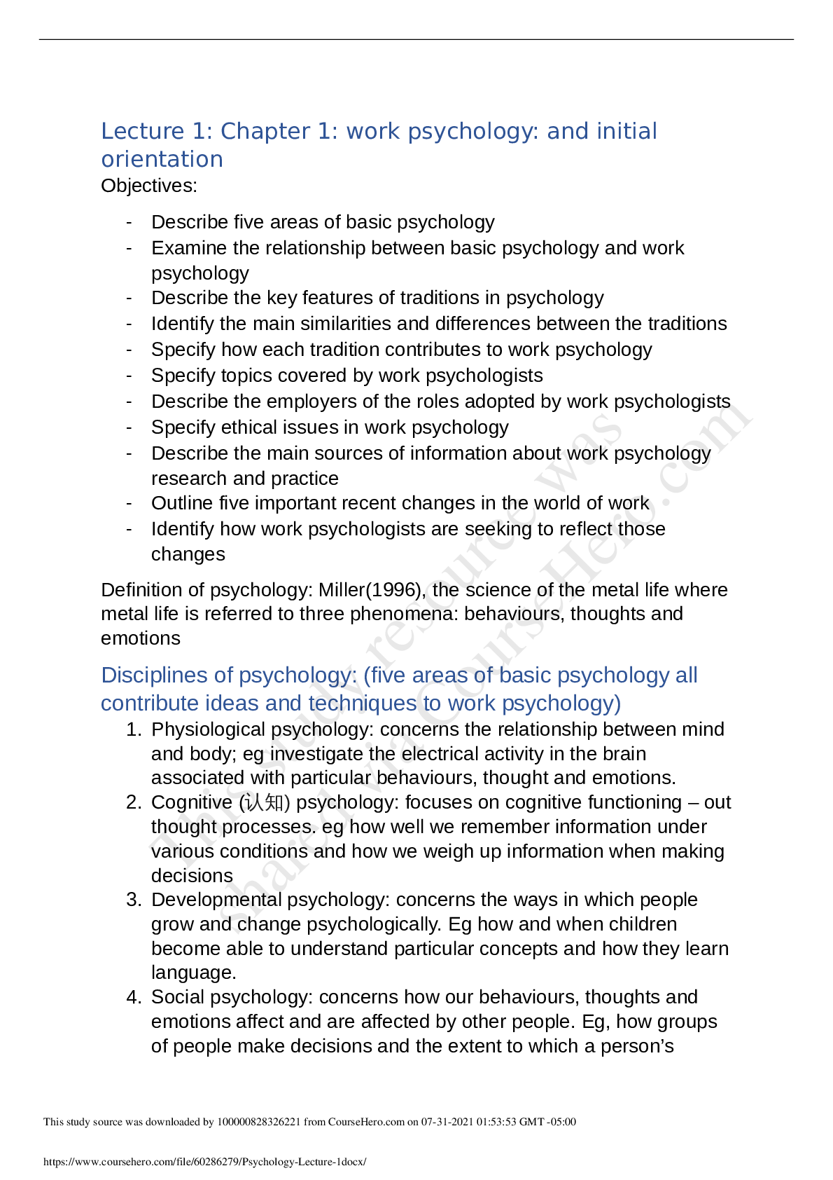 Psychology > LECTURE SLIDES/NOTES > Psychology Lecture 1 (All)