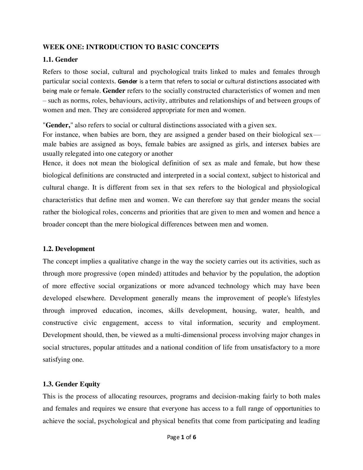 Gender Studies > LECTURE SLIDES/NOTES > INTRODUCTION TO GENDER ISSUES (All)
