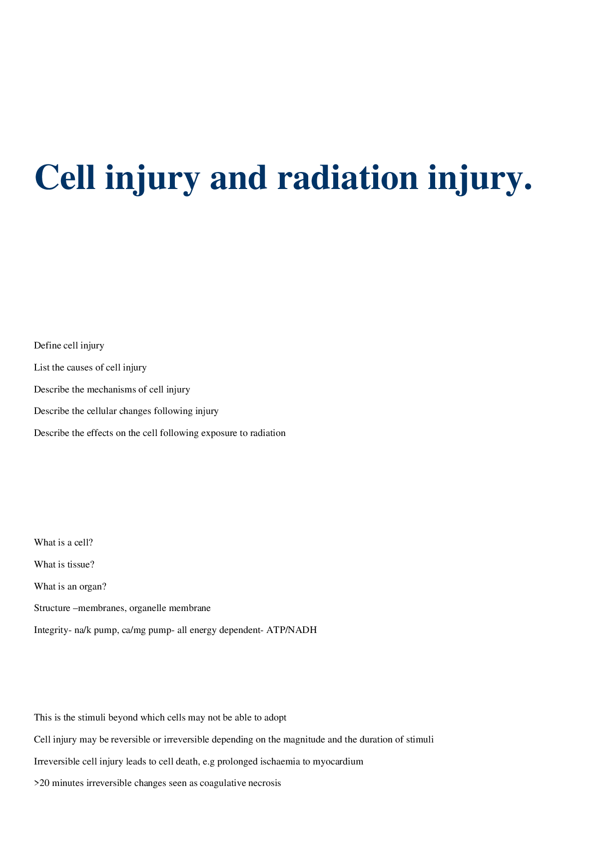 Anatomy > LECTURE SLIDES/NOTES > Cell injury and radiation injury Summary (All)