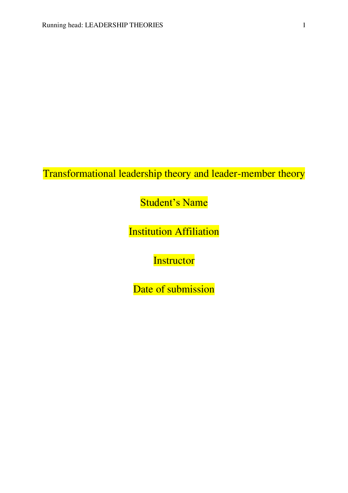 Leadership > DISCUSSION POST > LDR 600 Week 4 Discussion 1, Transformational Leadership Theory and Leader-member Theory (All)