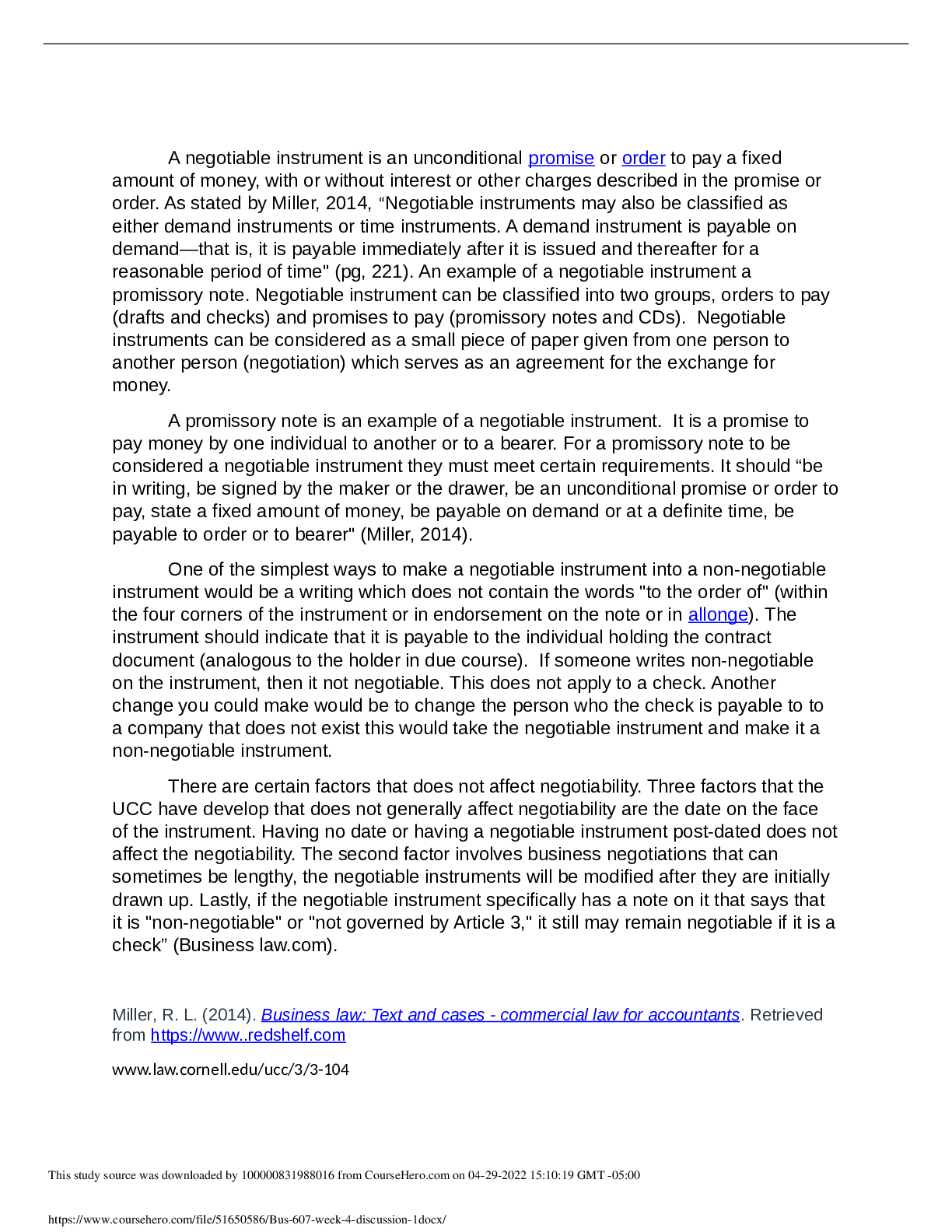 Business > DISCUSSION POST > BUS 607 Week 4 Discussion 1 Negotiability (All)
