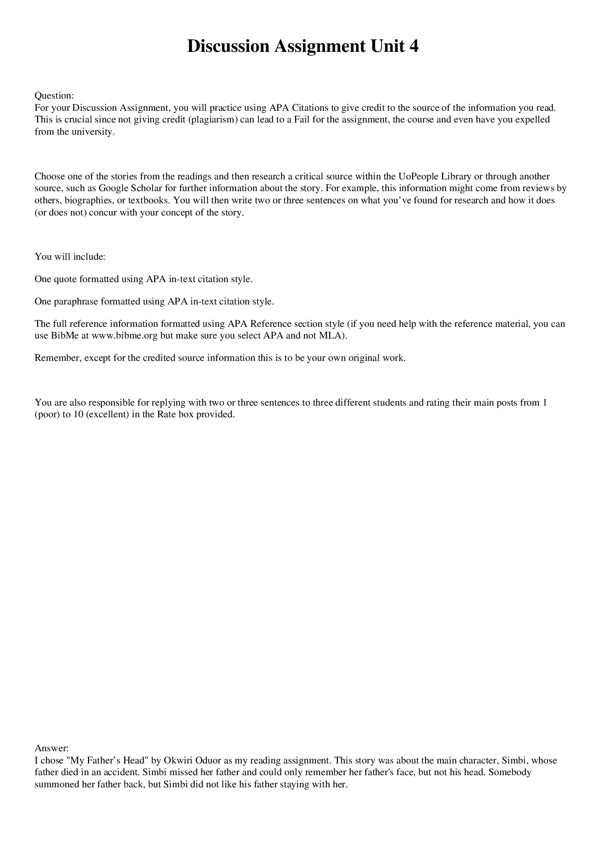 English > DISCUSSION POST > University of the People ENGL 0101 English Composition 1 - Discussion Assignment Unit 4 (All)