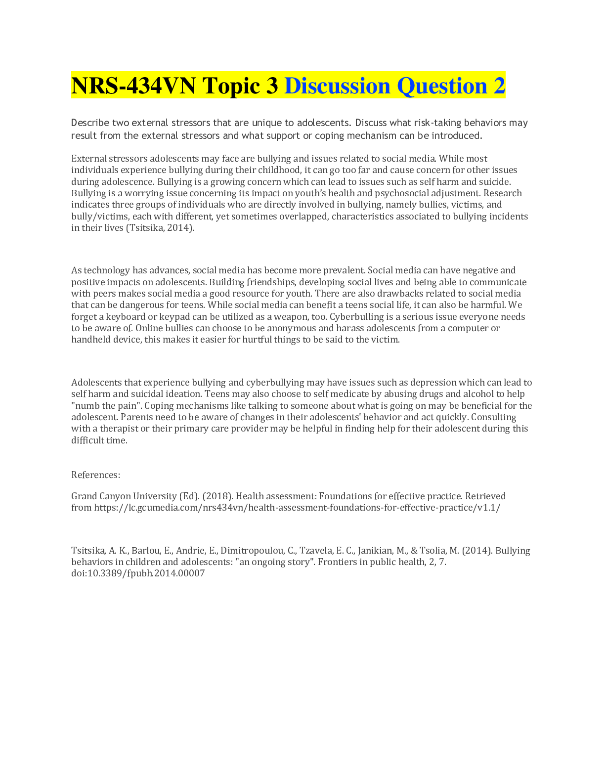 *NURSING > DISCUSSION POST > NRS-434VN Topic 3 Discussion Question 2/RATED A (All)