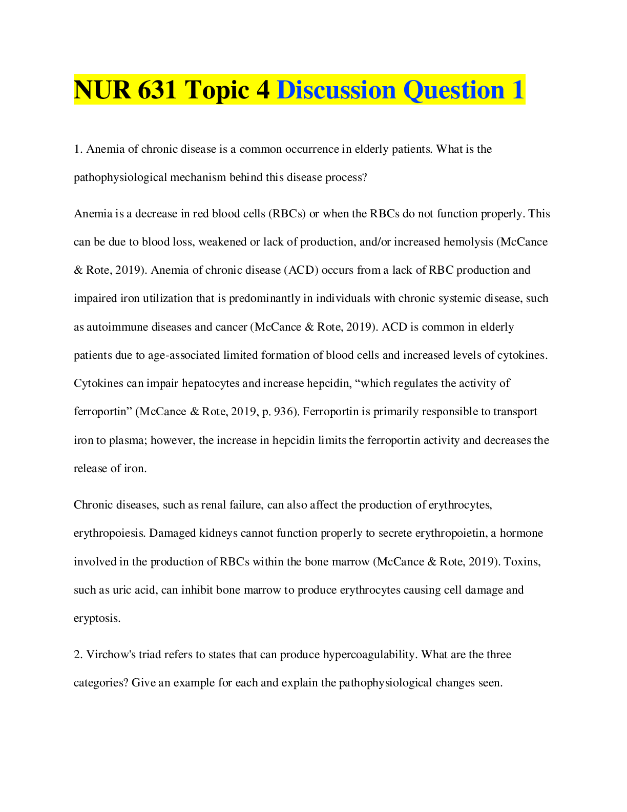 *NURSING > DISCUSSION POST > NUR 631 Topic 4 Discussion Question 1/COMPLETE SOLUTION/ RATED A (All)