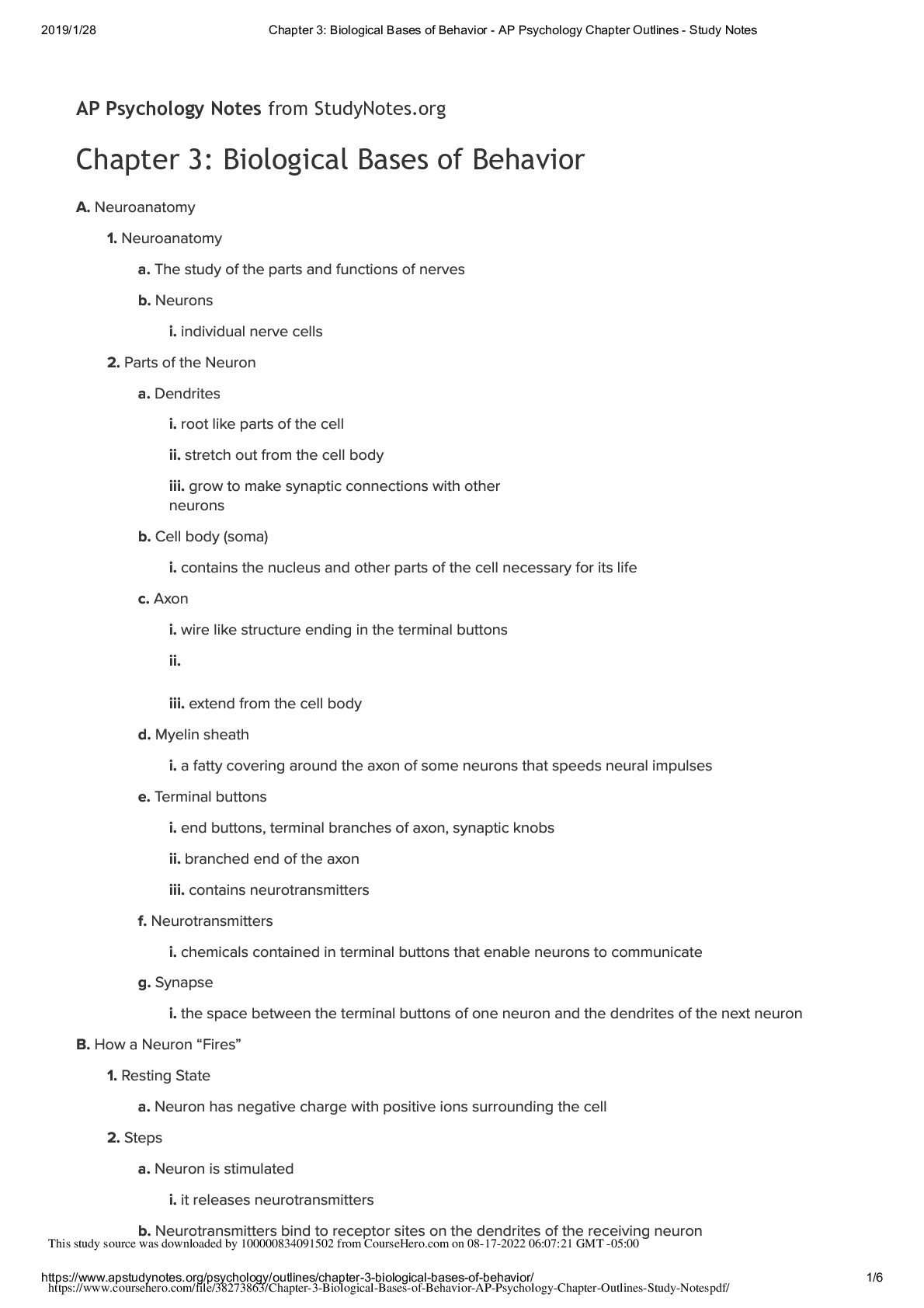 Physiology > Study Notes > Chapter 3_ Biological Bases of Behavior - AP Psychology Chapter Outlines - Study Notes (All)