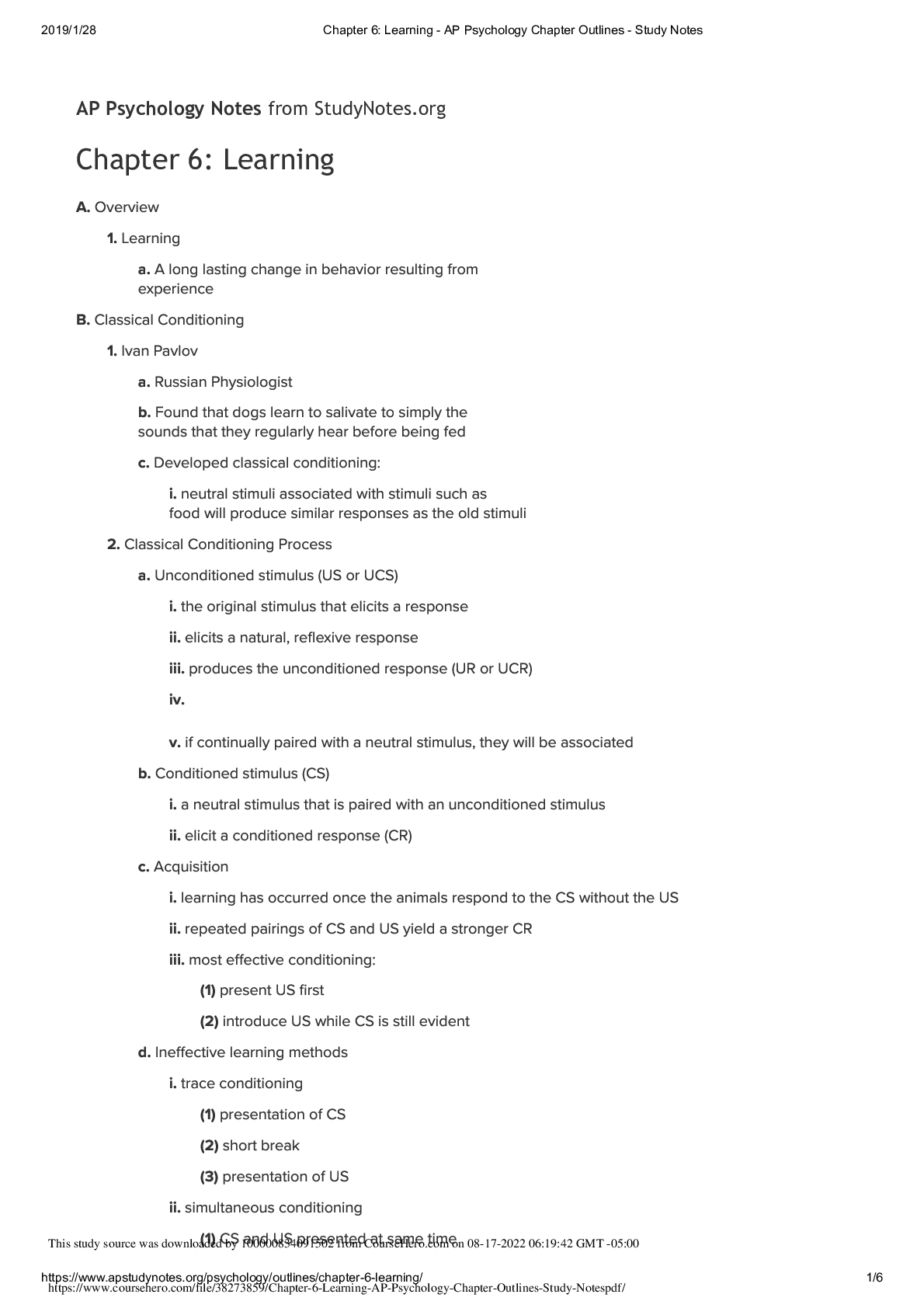 Physiology > Study Notes > Chapter 6_ Learning - AP Psychology Chapter Outlines - Study Notes (All)