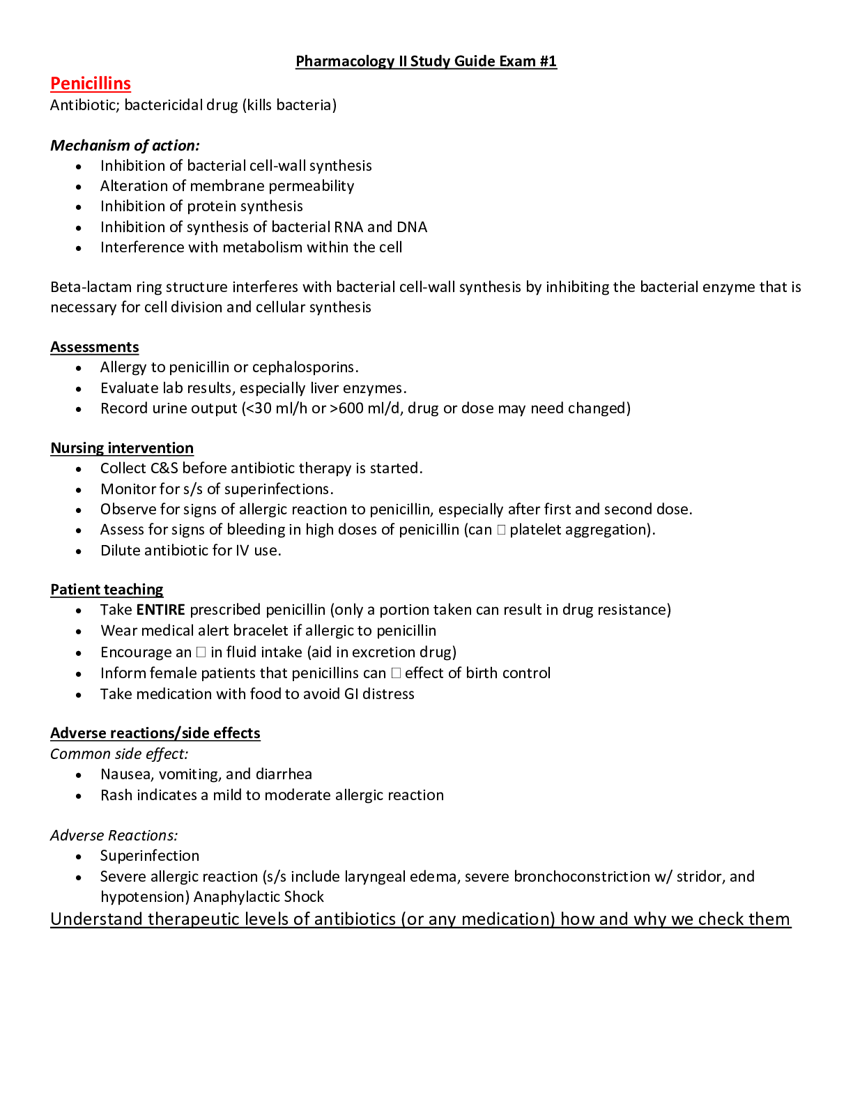 Pharmacology > Study Notes > NUR 204 Pharmacology II Study Guide Exam 1 (Penicillin) (All)