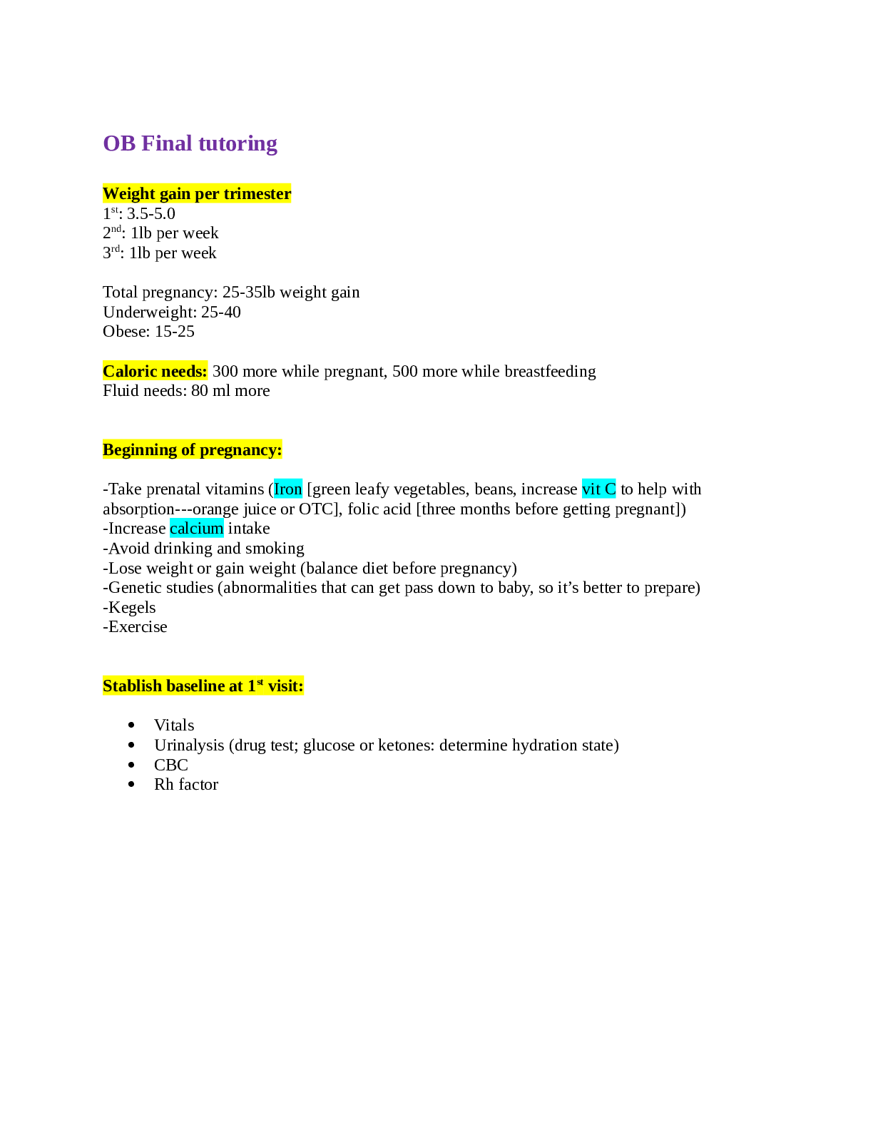 *NURSING > Study Notes > OB Maternal Newborn ATI Proctored Notes [graded A+ (All)