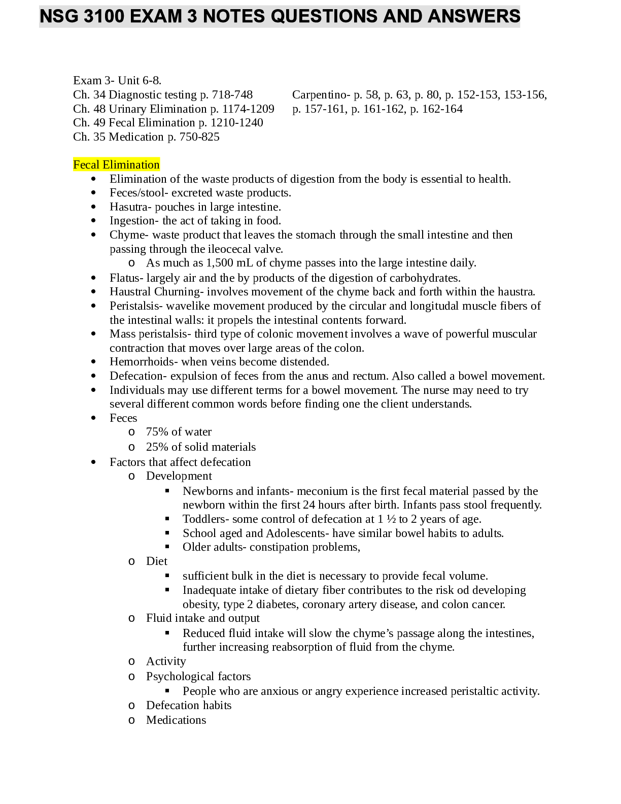 Health Care > Study Notes > NSG 3100 EXAM 3 NOTES QUESTIONS AND ANSWERS (All)