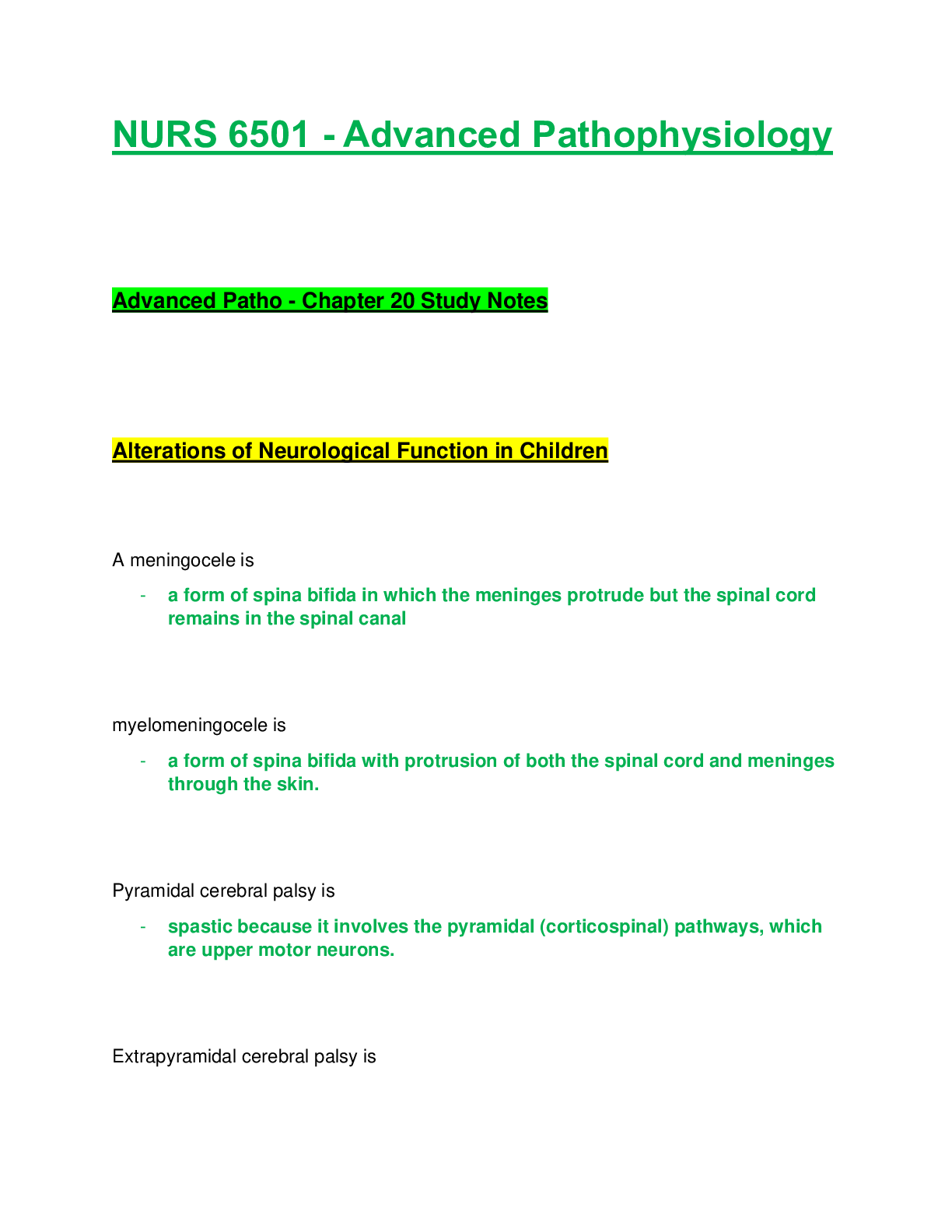 *NURSING > Study Notes > NURS 6501 / NURS6501: Advanced Pathophysiology - Chapter 20 Study Notes (Latest Update) Walden University (All)