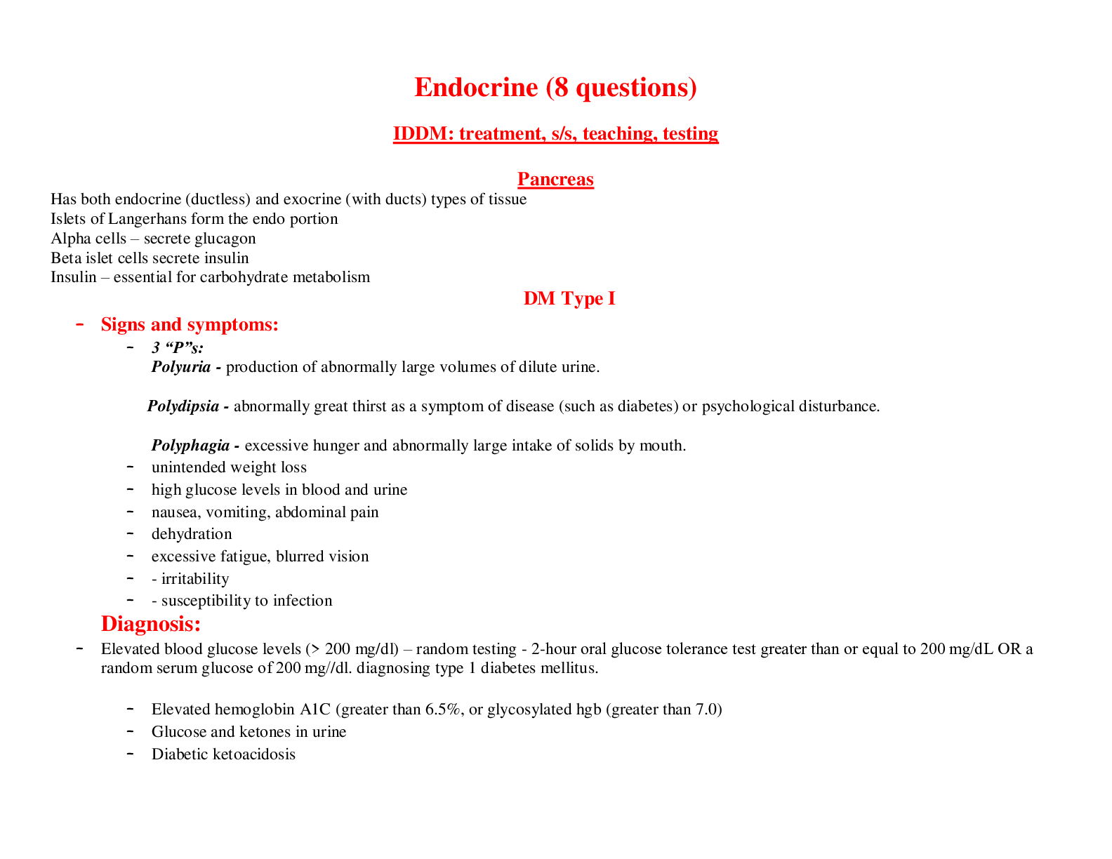 *NURSING > Study Notes > NURSING 210 Peds, Test 2 Endocrine (8 questions) IDDM: treatment, s/s, teaching, testing STUDY GUIDE (All)