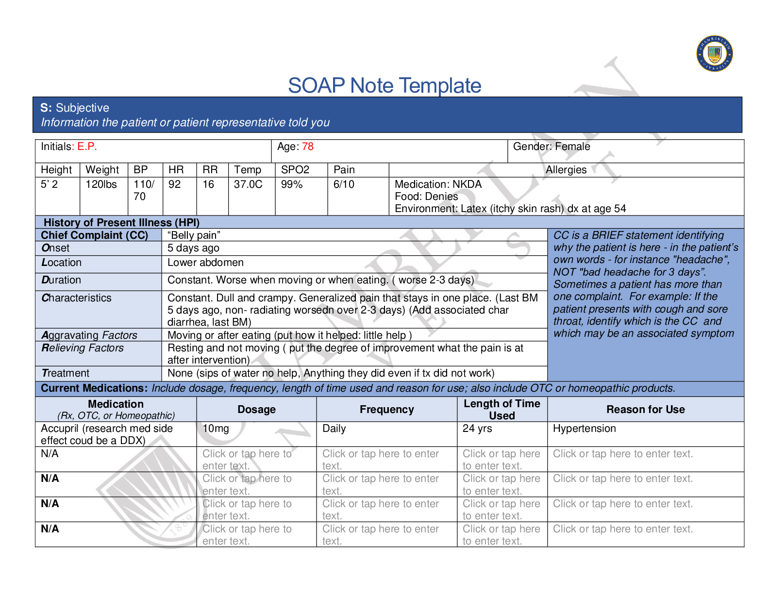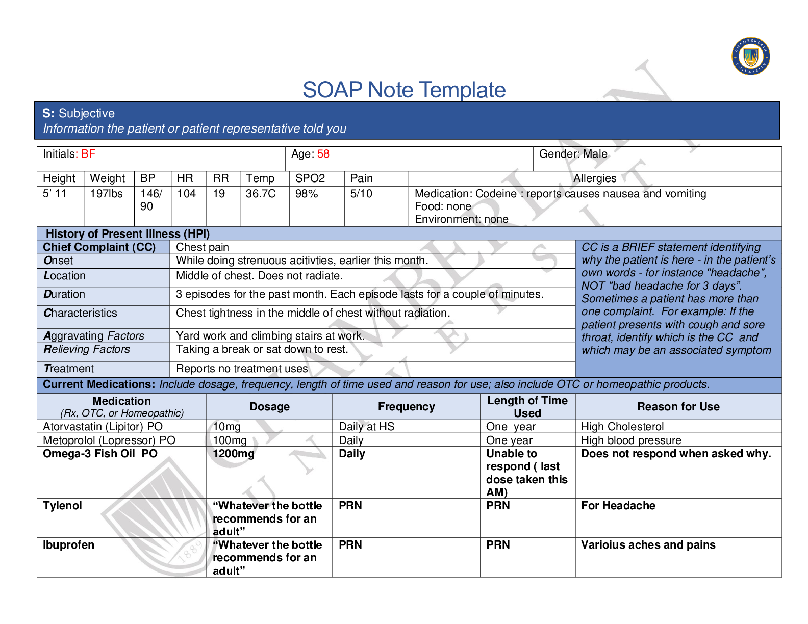 *NURSING > SOAP NOTE > NR 509 Week 1 Health History SOAP Note (All)