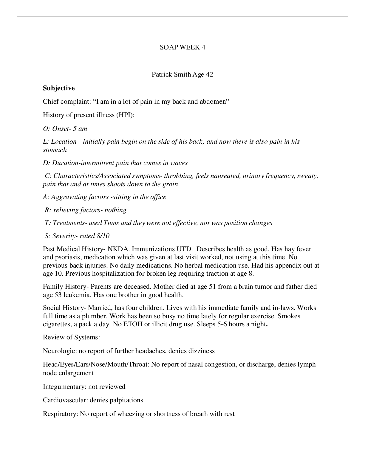 *NURSING > SOAP NOTE > Summary NR 509 Week 5 Abdominal Pain SOAP Note (All)