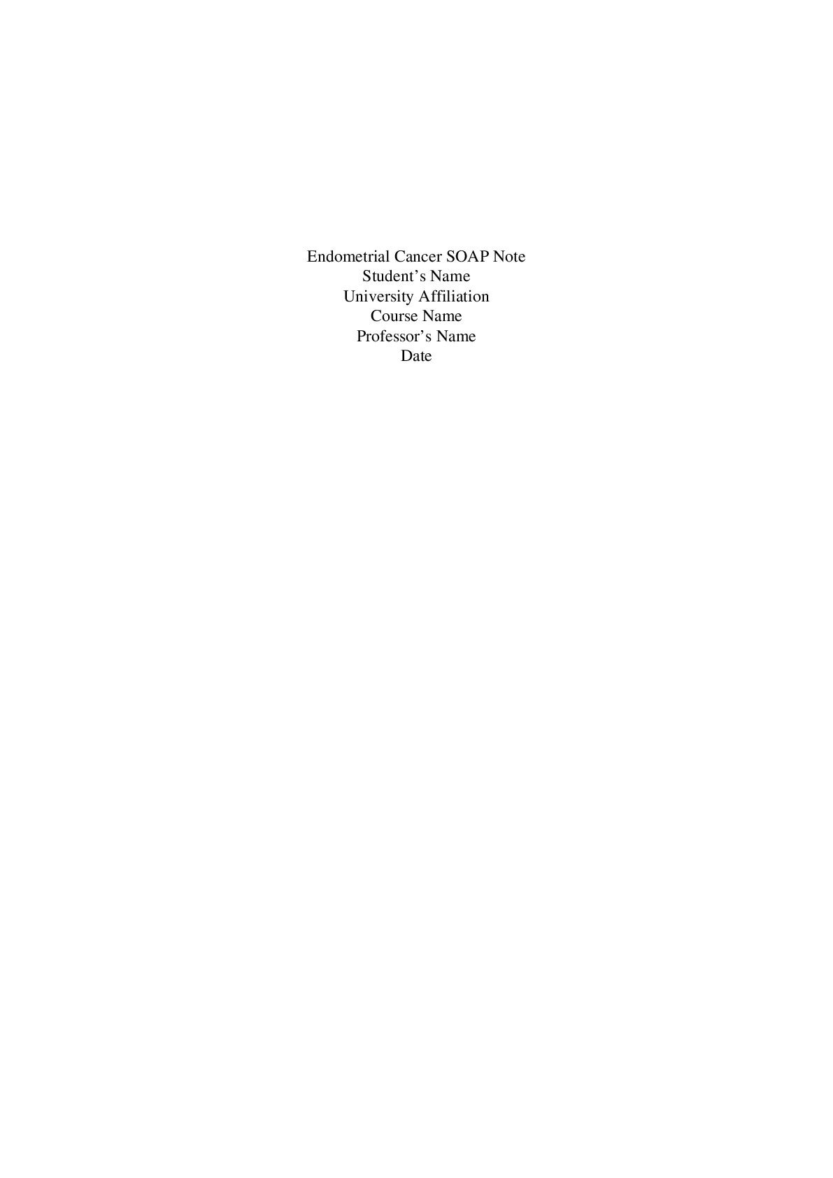 *NURSING > SOAP NOTE > Endometrial Cancer SOAP Note. (All)
