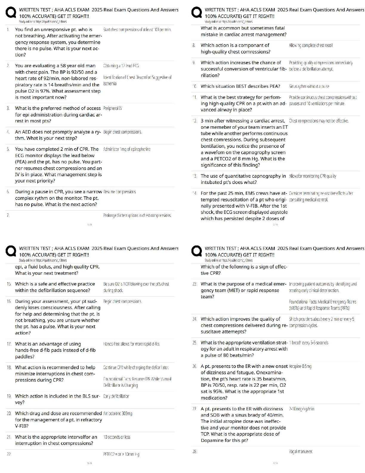 Advanced Theoretical Perspectives of Nursing > QUESTIONS and ANSWERS > AHA ACLS Exam 2025 Written Test / Real Exam Questions & Answers / Score 100% Prep (All)