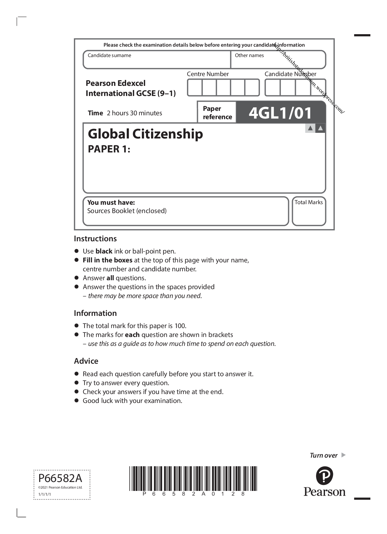 Global Citizenship > QUESTION PAPER (QP) > Pearson Edexcel International GCSE (9–1) 4GL1/01 Global Citizenship PAPER 1: QUESTION PAPER.. Summer 2021 (All)