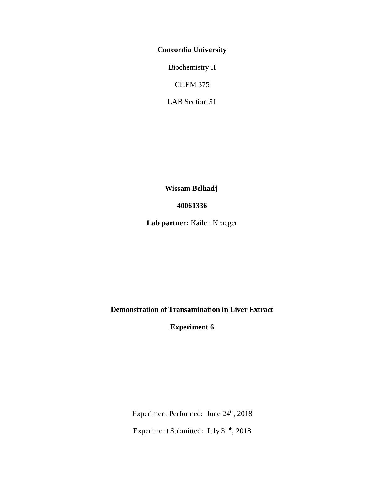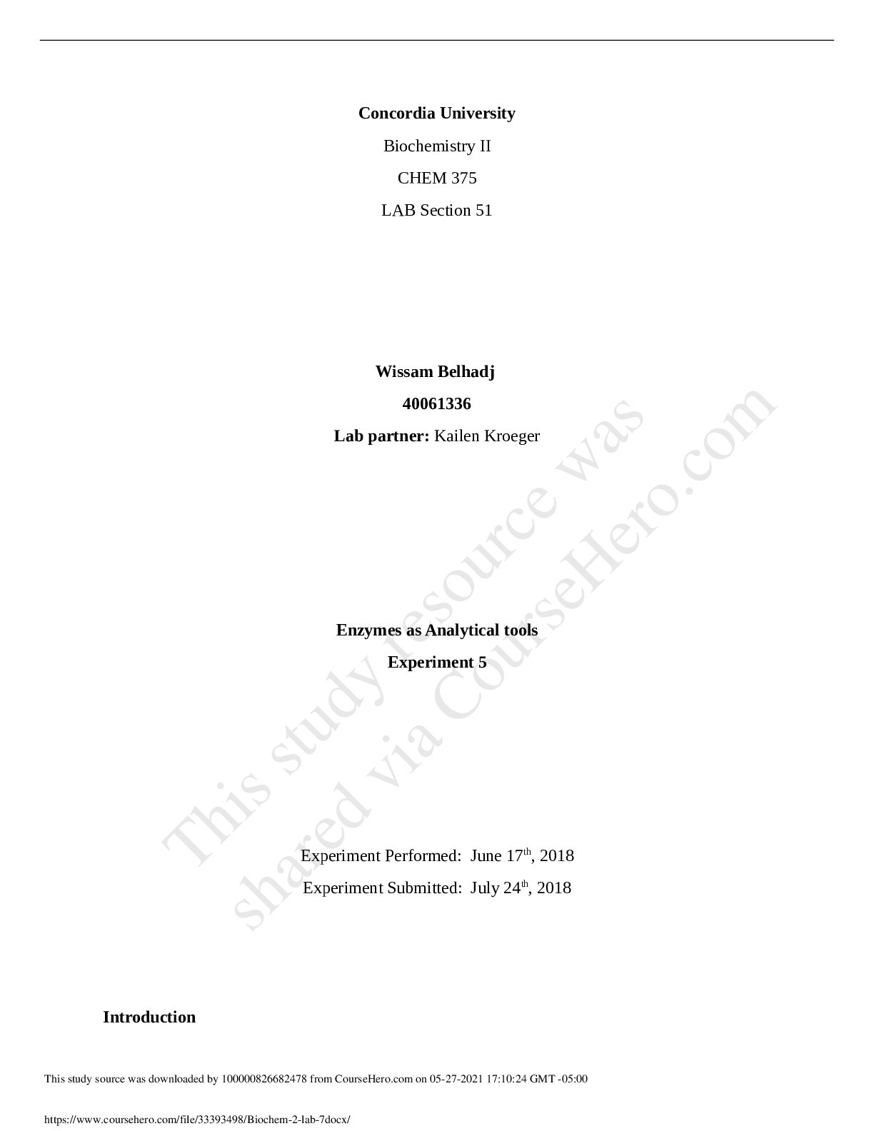 BioChemistry > Lab Experiment > Biochemistry II CHEM 375 LAB Section 51 (All)
