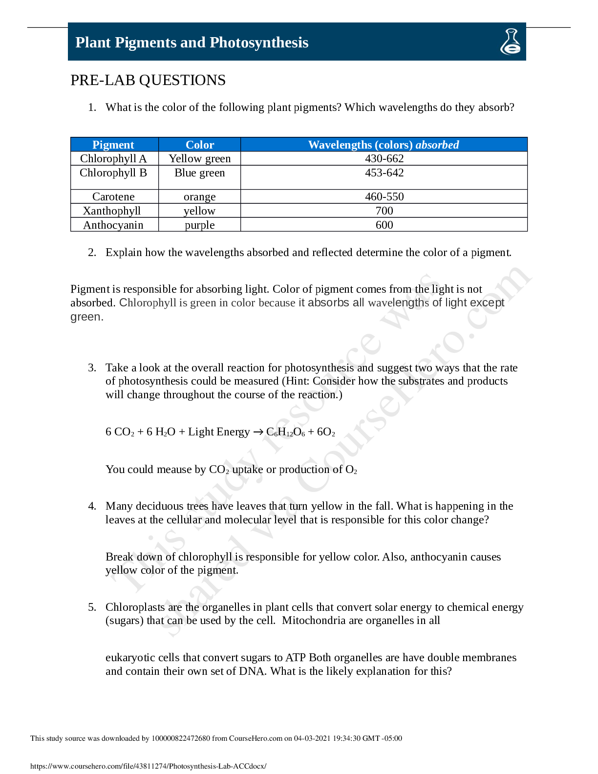 Biology > Lab Experiment > BIO 111Photosynthesis Lab ACC (All)