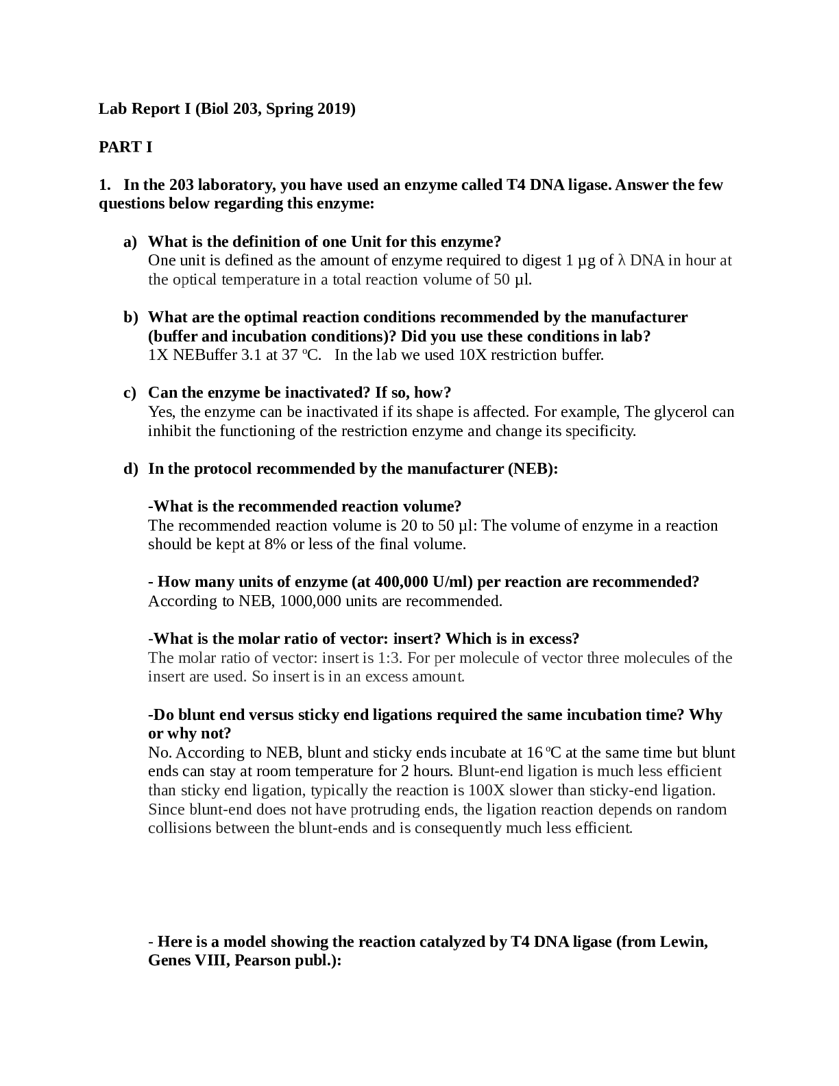 Medical Studies > Lab Report > Hunter College, CUNY - BIO 203Genetics-Lab 1. (All)