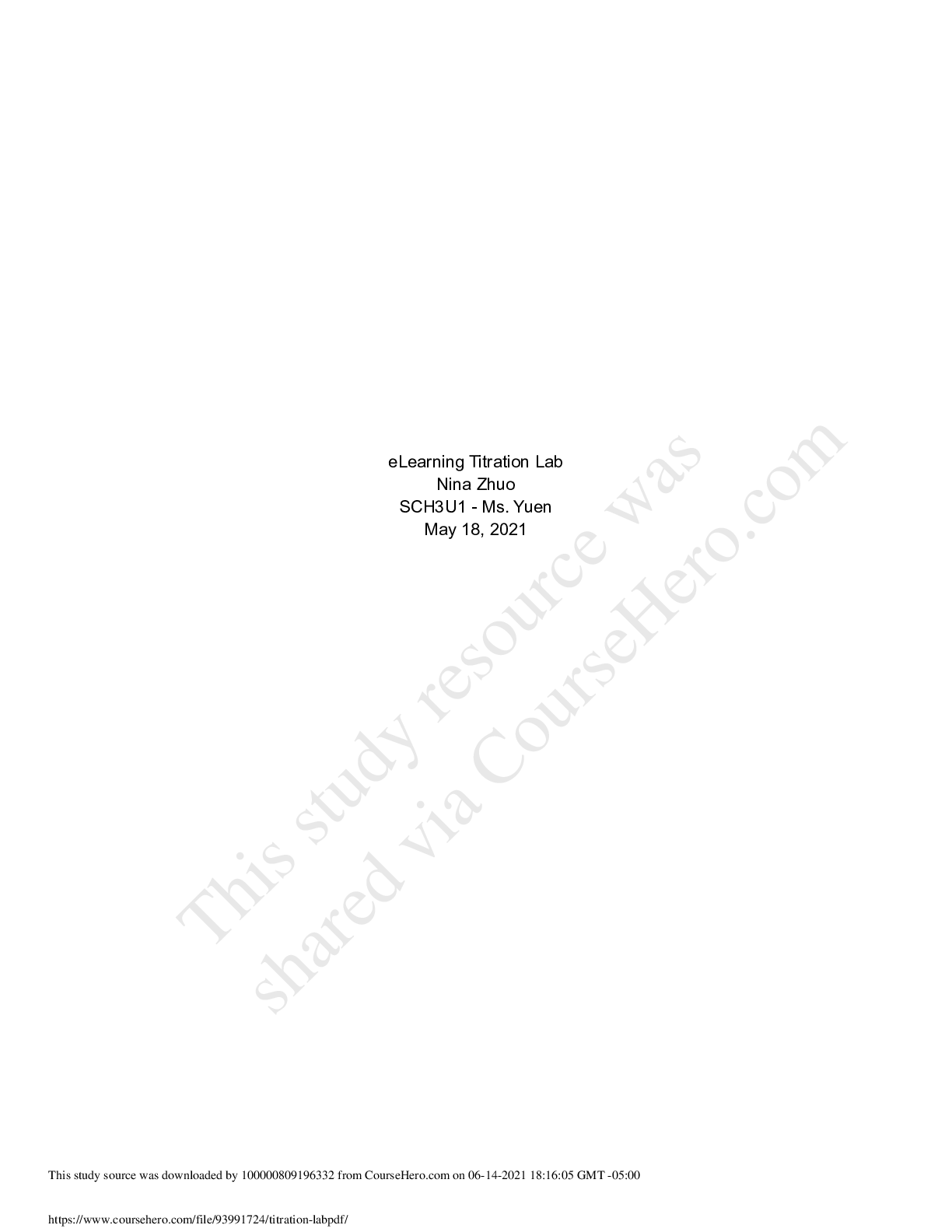Chemistry > Lab Report > Milliken Mills High SchoolSCI 123titration lab (All)