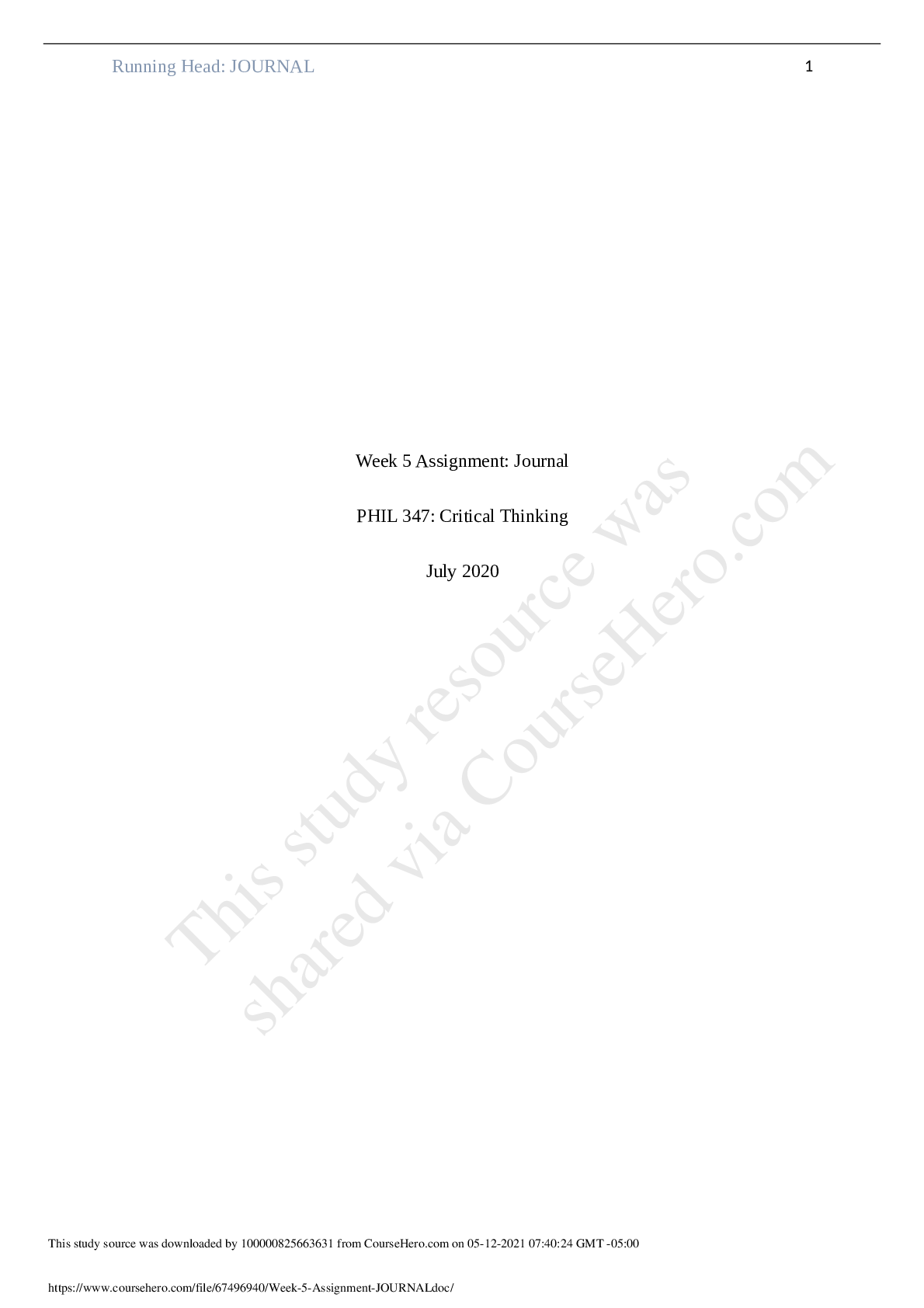 *NURSING > JOURNAL > PHIL 347 WEEK 5 ASSIGNMENT; JOURNAL (FALL 2020) (All)