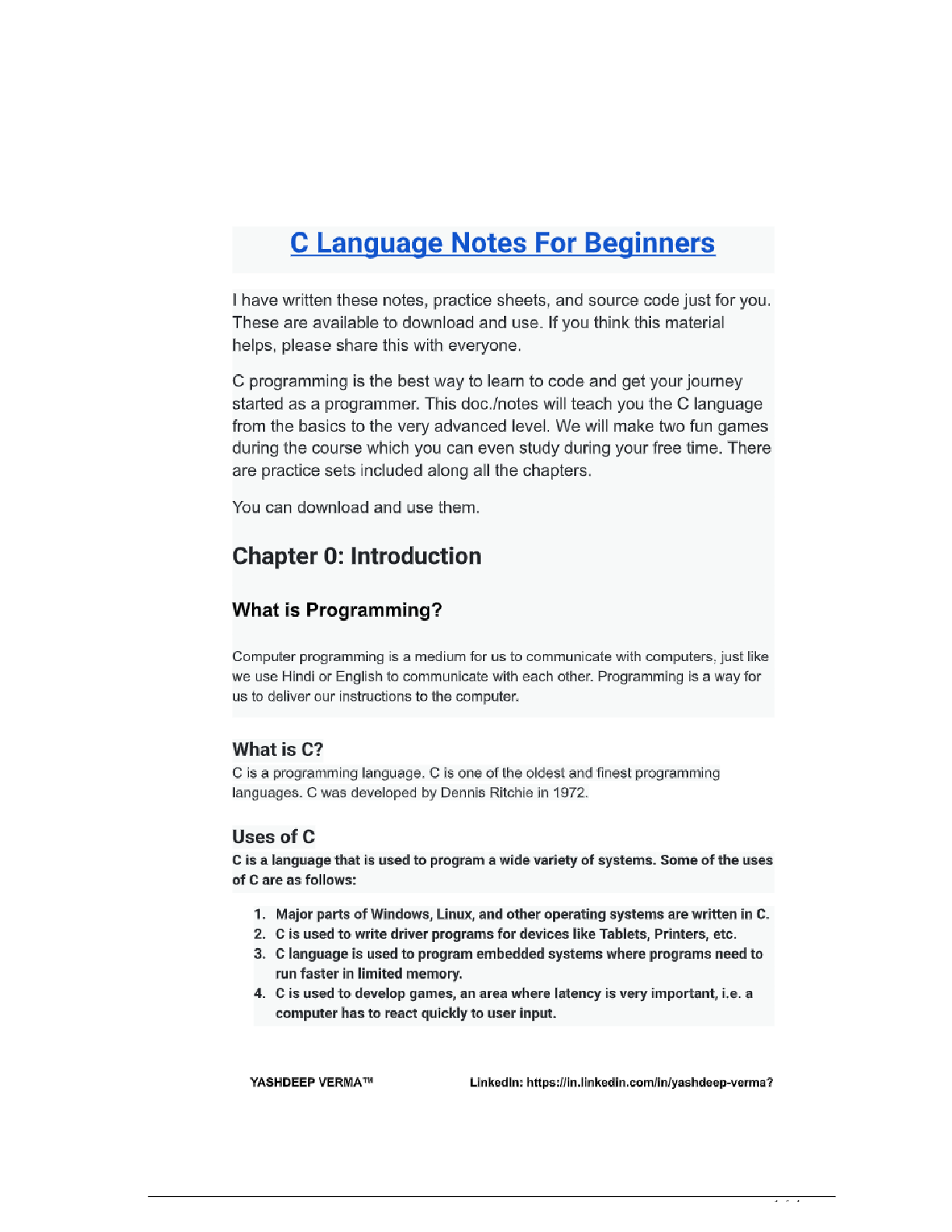 Computer Networking > Solutions Guide > Learn C Programming Language Notes For Beginners (All)