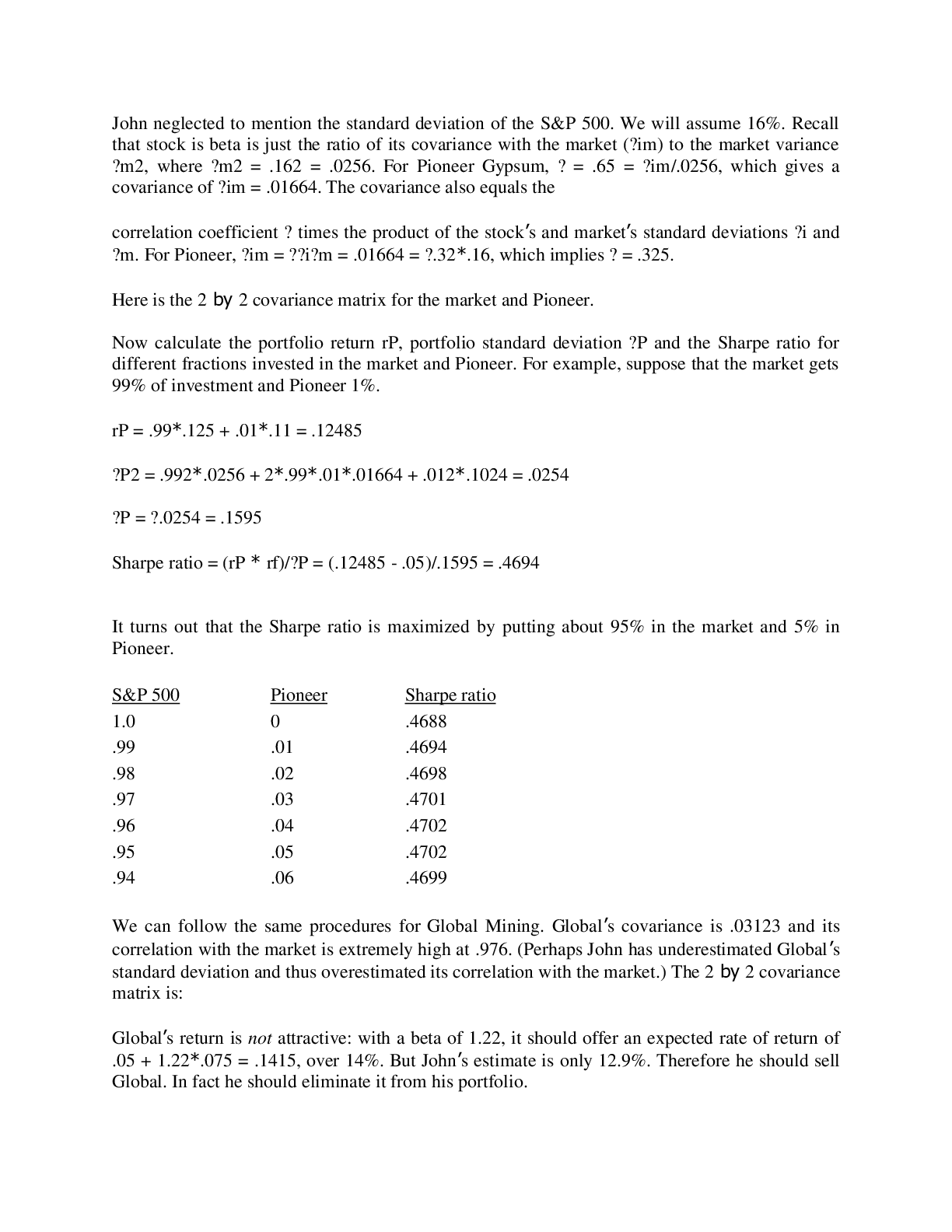 Industrial Chemistry > Solutions Guide > North Arkansas College FIN FIN 145 1.Table 8.4 reproduces John's notes on Pioneer Gypsum and Global Mining. Calculate the expected return, risk premium, and standard deviation of a Share Question (All)