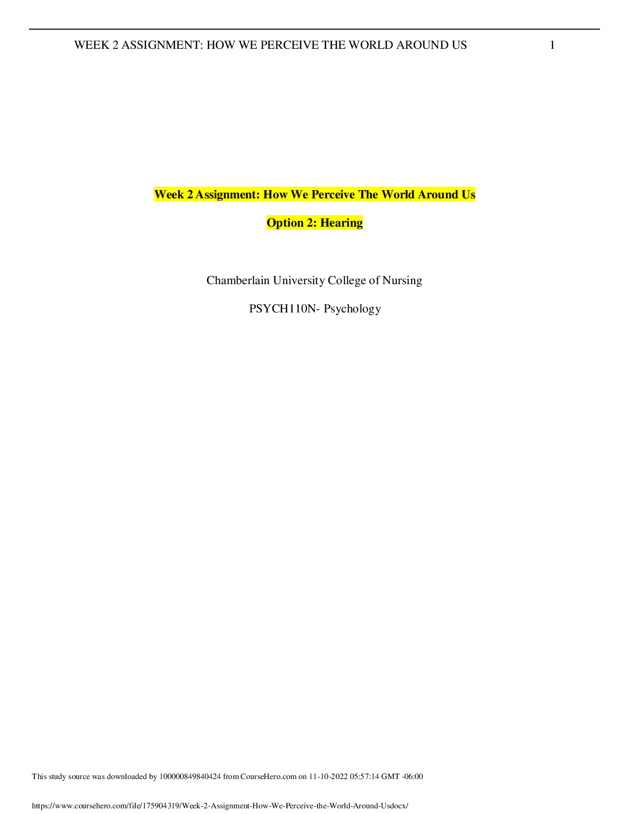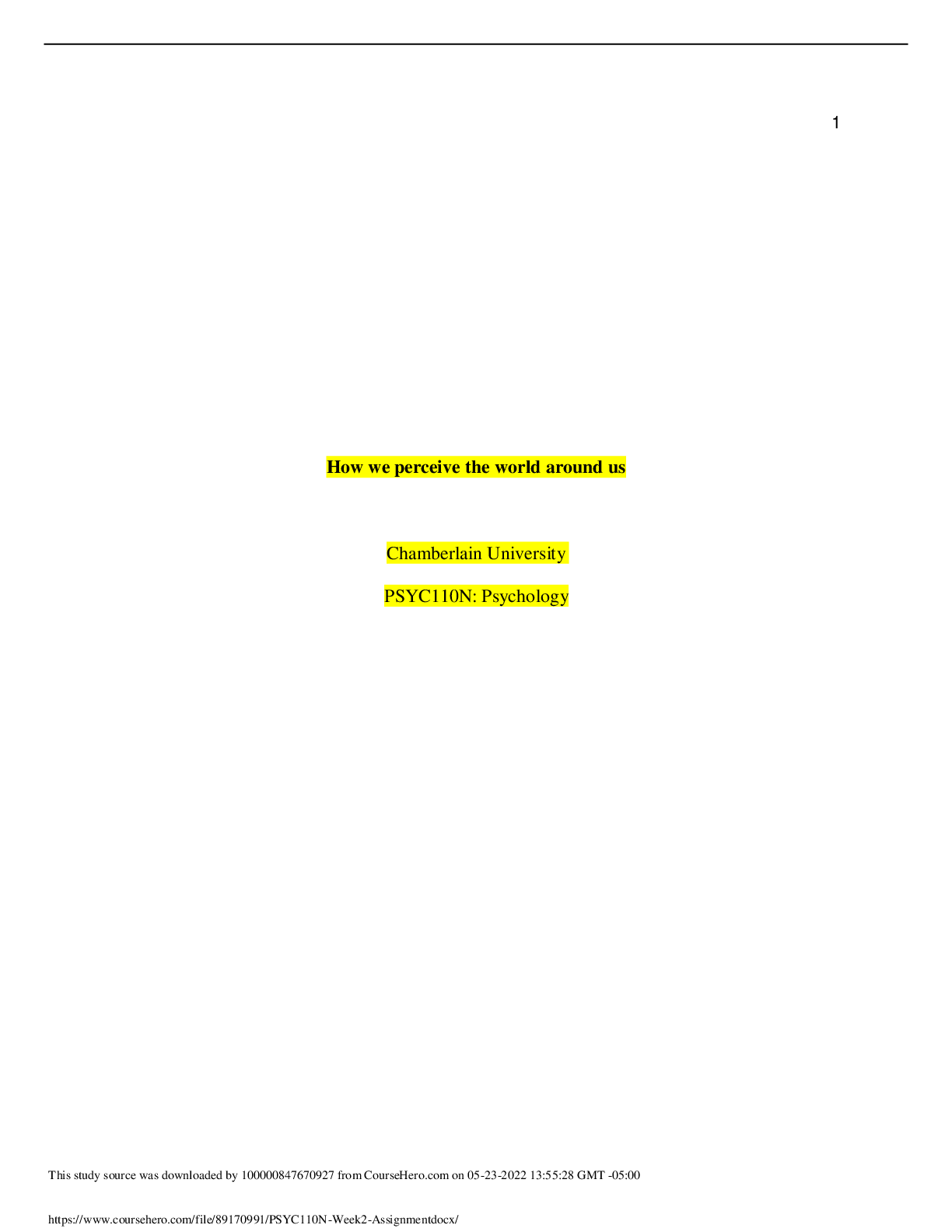 Psychology > CASE STUDY > PSYC 110N Week 2 Assignment: How We Perceive the World Around Us (All)
