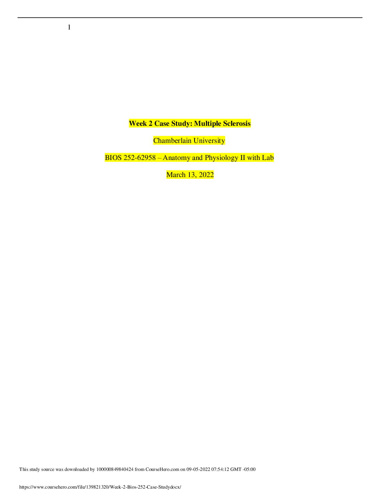 Anatomy > CASE STUDY > BIOS-252 Week 2 Case Study Assignment: Multiple Sclerosis (GRADED A) (All)