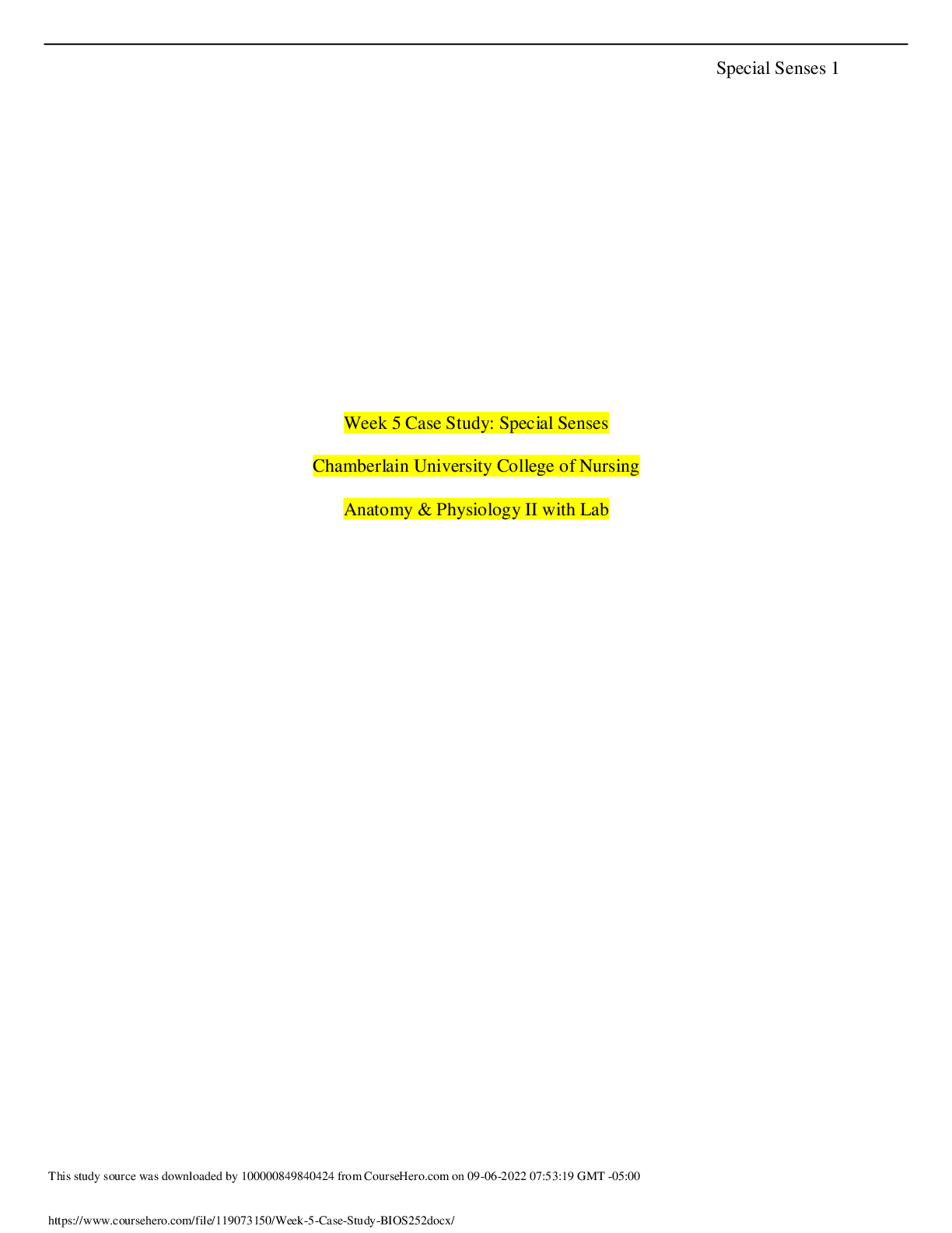 Anatomy > CASE STUDY > BIOS 252 Week 5 Case Study Assignment: Special Senses (GRADED A) | Chamberlain University College of Nursing (All)