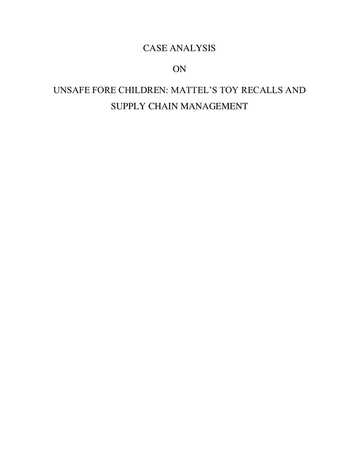 Procurement > CASE STUDY > Ass.WK 2-MATTEL CASE STUDY- CREATING VALUE THROUGH OPERATIONS ANALYSIS (All)