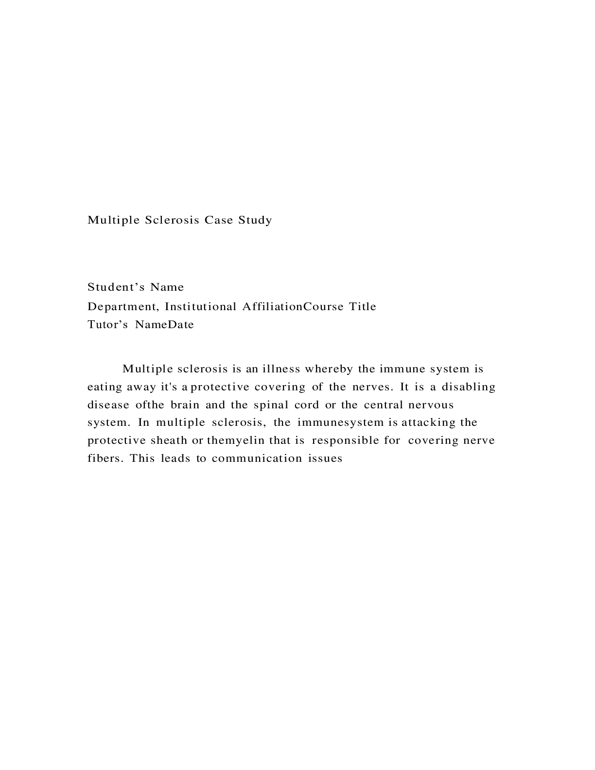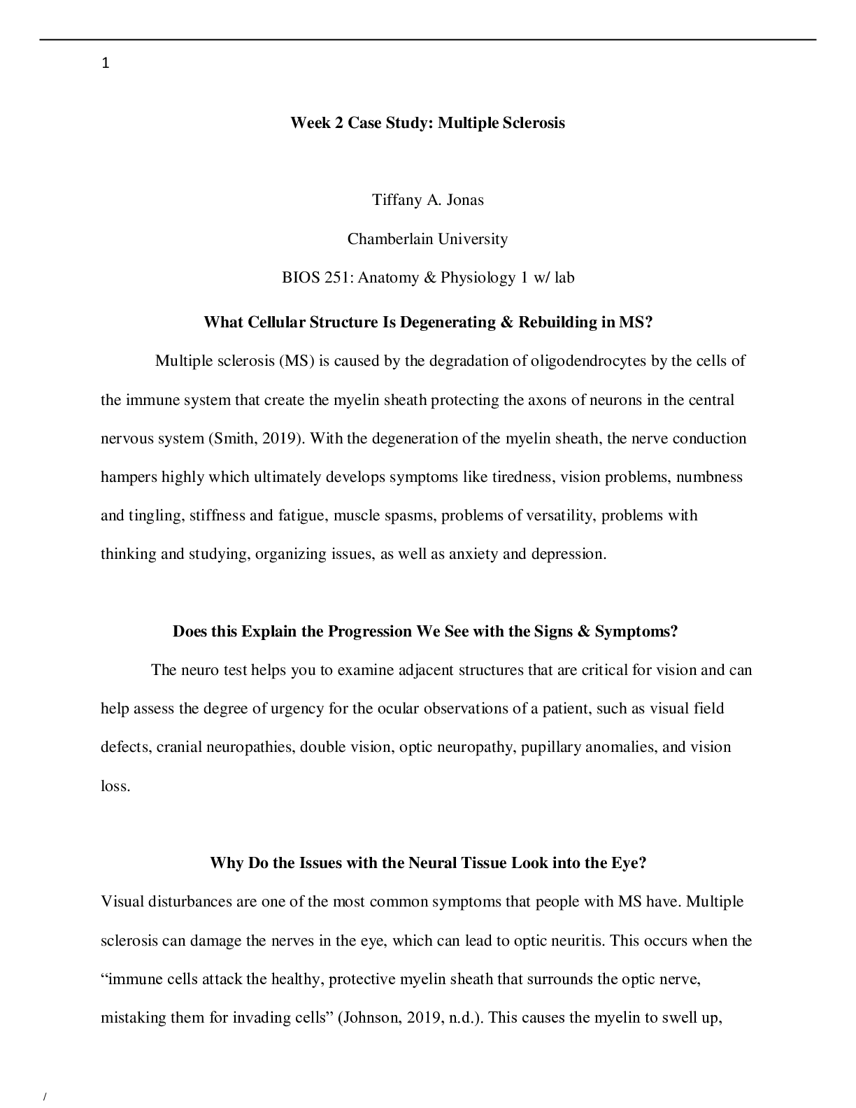 Biology > CASE STUDY > Week 2 Case Study Multiple Sclerosis Assignment Bios 252 (All)