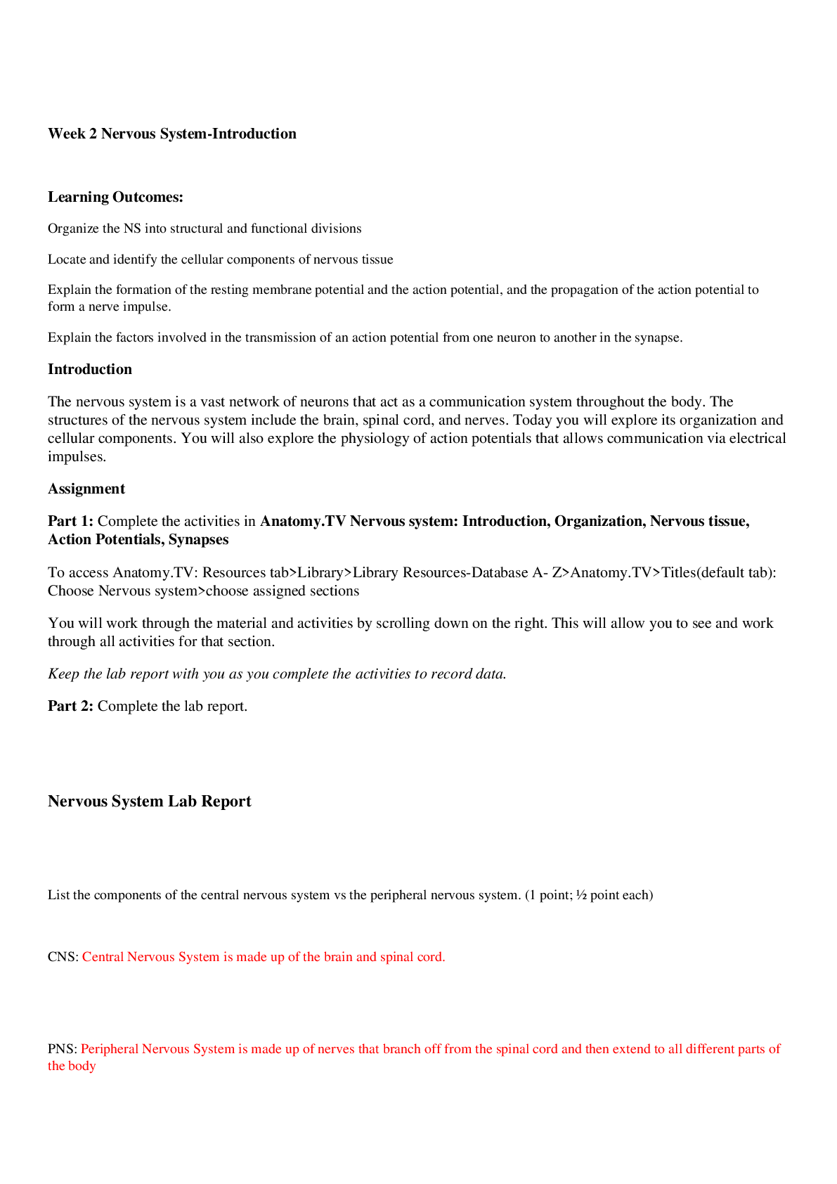 Biology > CASE STUDY > Week 2 Nervous System-Introduction Bios 252 (All)