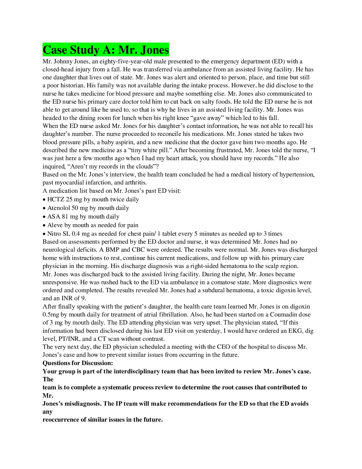 Criminology > CASE STUDY > Mr. Johnny Jones, an eighty-five-year-old male presented to the... (All)