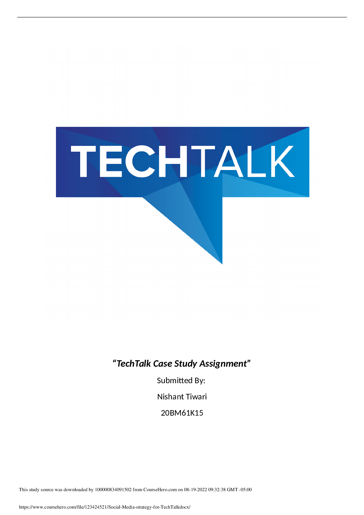 Database Management > CASE STUDY > Social Media strategy for TechTalk. Indian Institute of Technology, MANAGEMENT 026 (All)