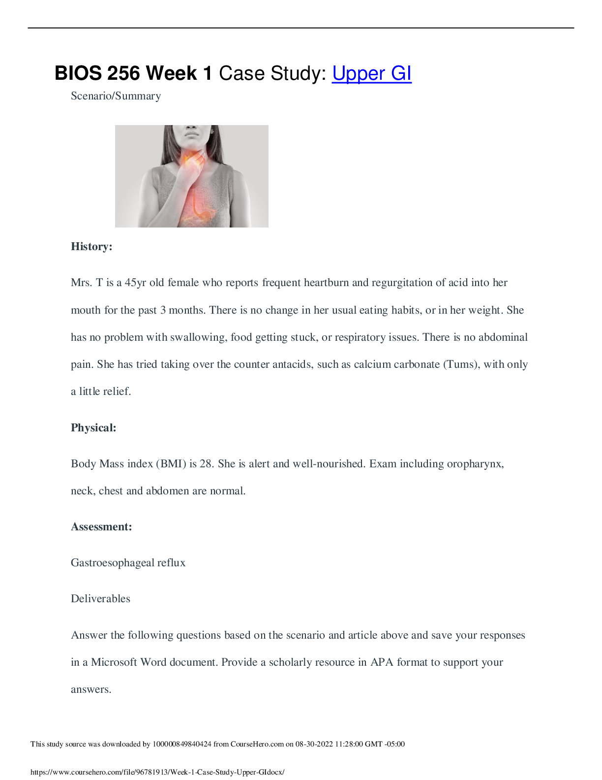 Anatomy and Physiology - A&P 1 > CASE STUDY > BIOS 256 Week 1 Case Study: Upper GI (GRADED A) (All)