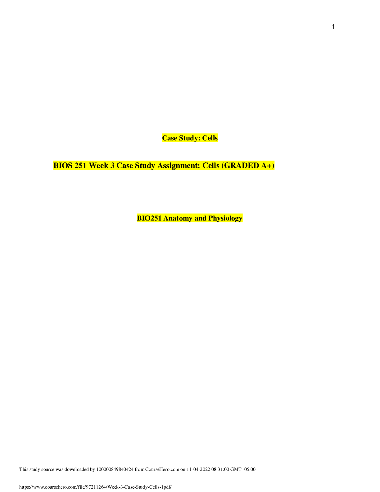 Anatomy and Physiology - A&P 1 > CASE STUDY > BIOS 251 Week 3 Case Study Assignment: Cells (GRADED A+) (All)