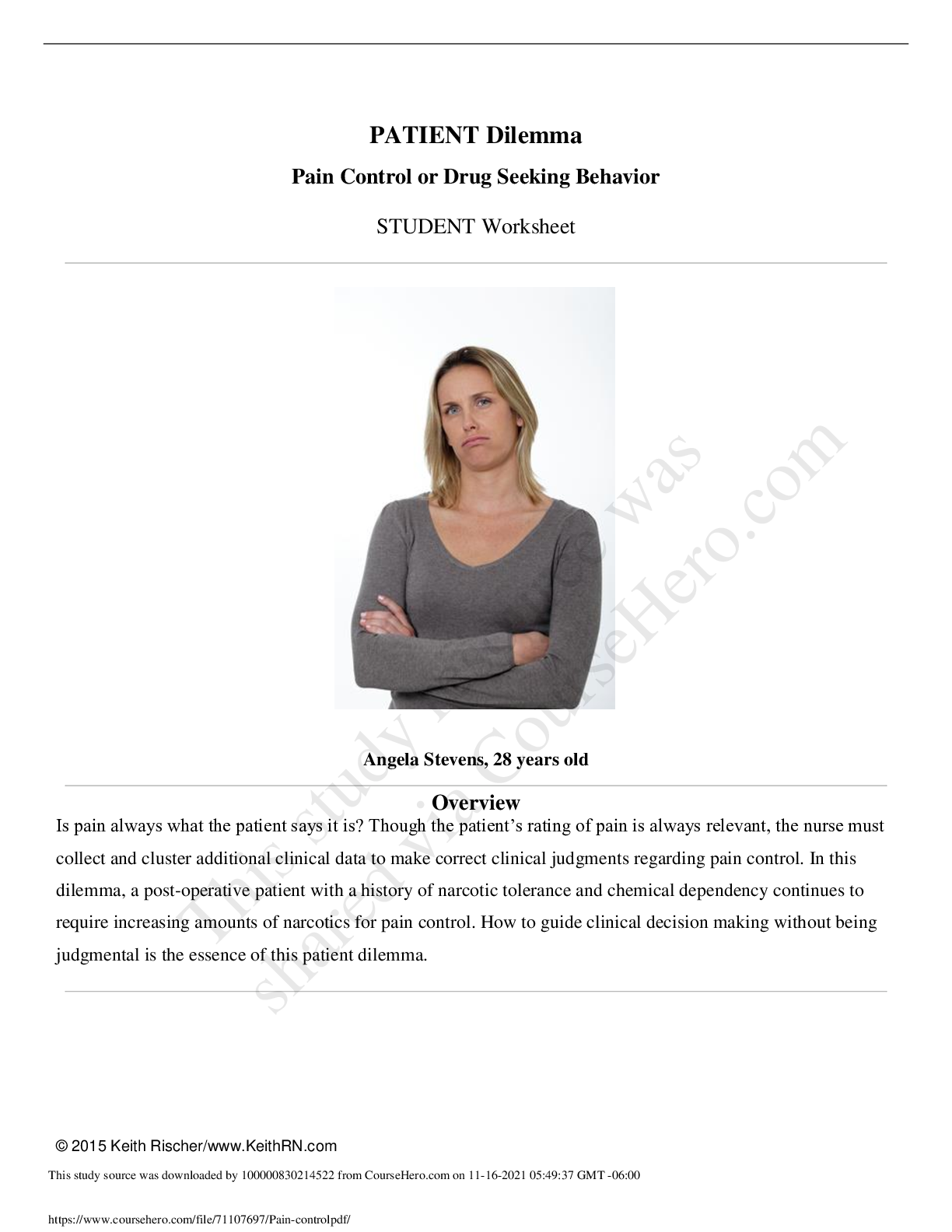 Health Care > CASE STUDY > PATIENT Dilemma Pain Control or Drug Seeking Behavior STUDENT Worksheet (All)